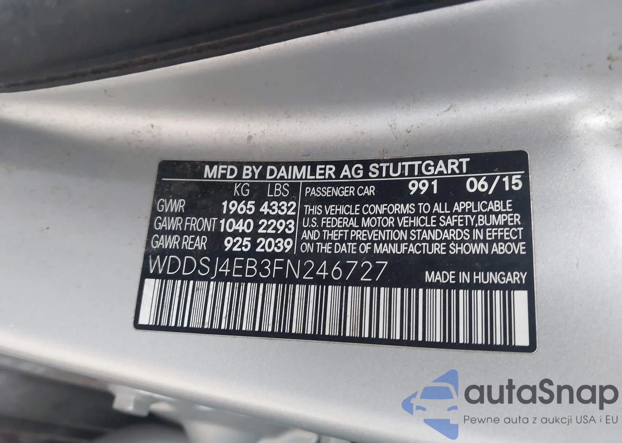 Автомобиль Mercedes-Benz CLA-klasse 2015 (VIN WDDSJ4EB3FN246727) ранее не участвовал в торгах. Документы чистые, пробег соответствует или ниже среднего по рынку. Продаётся страховой компанией — рекомендуем покупку. Доставка в порт займет около 6–8 недель.