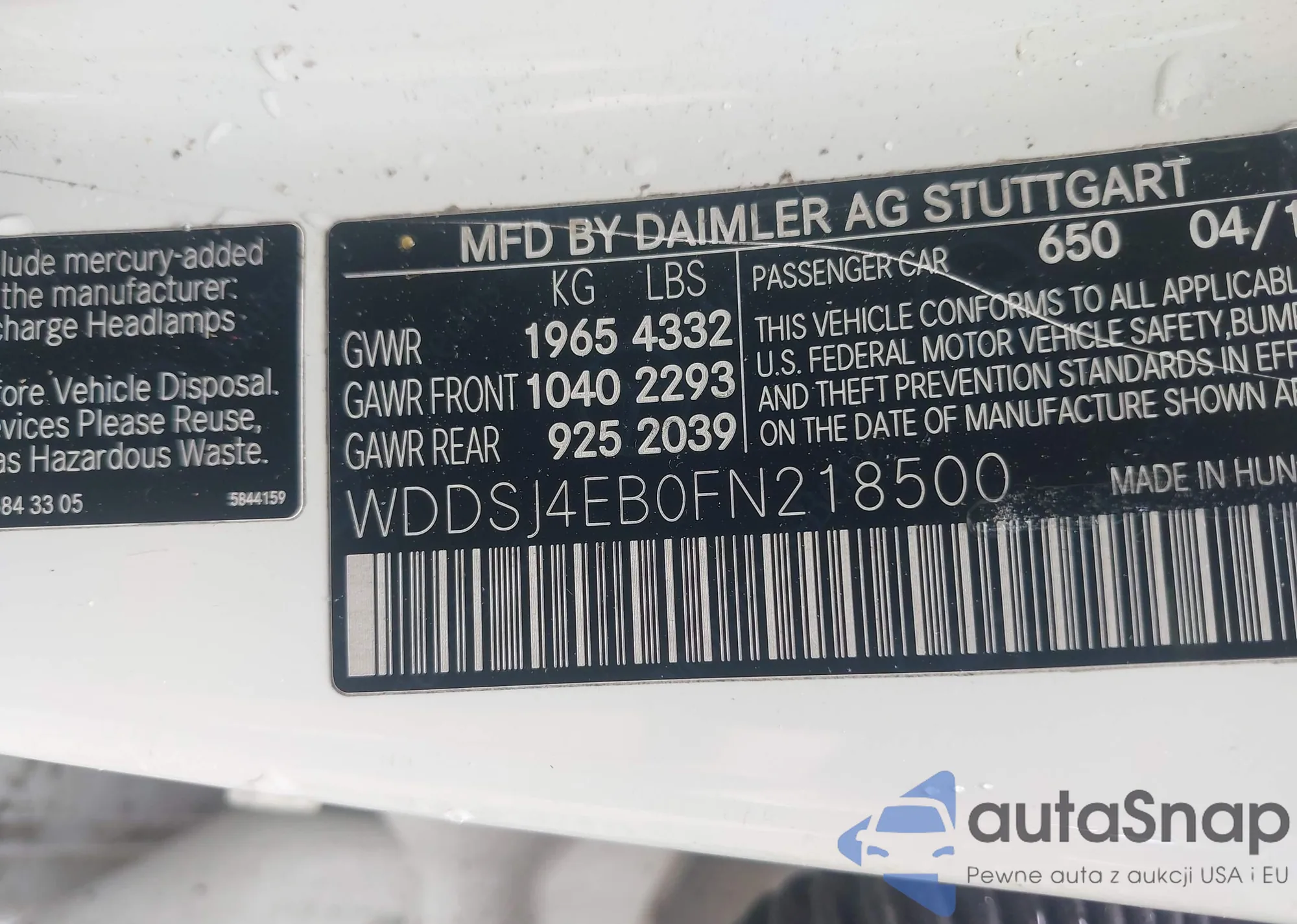 VIN: WDDSJ4EB0FN218500