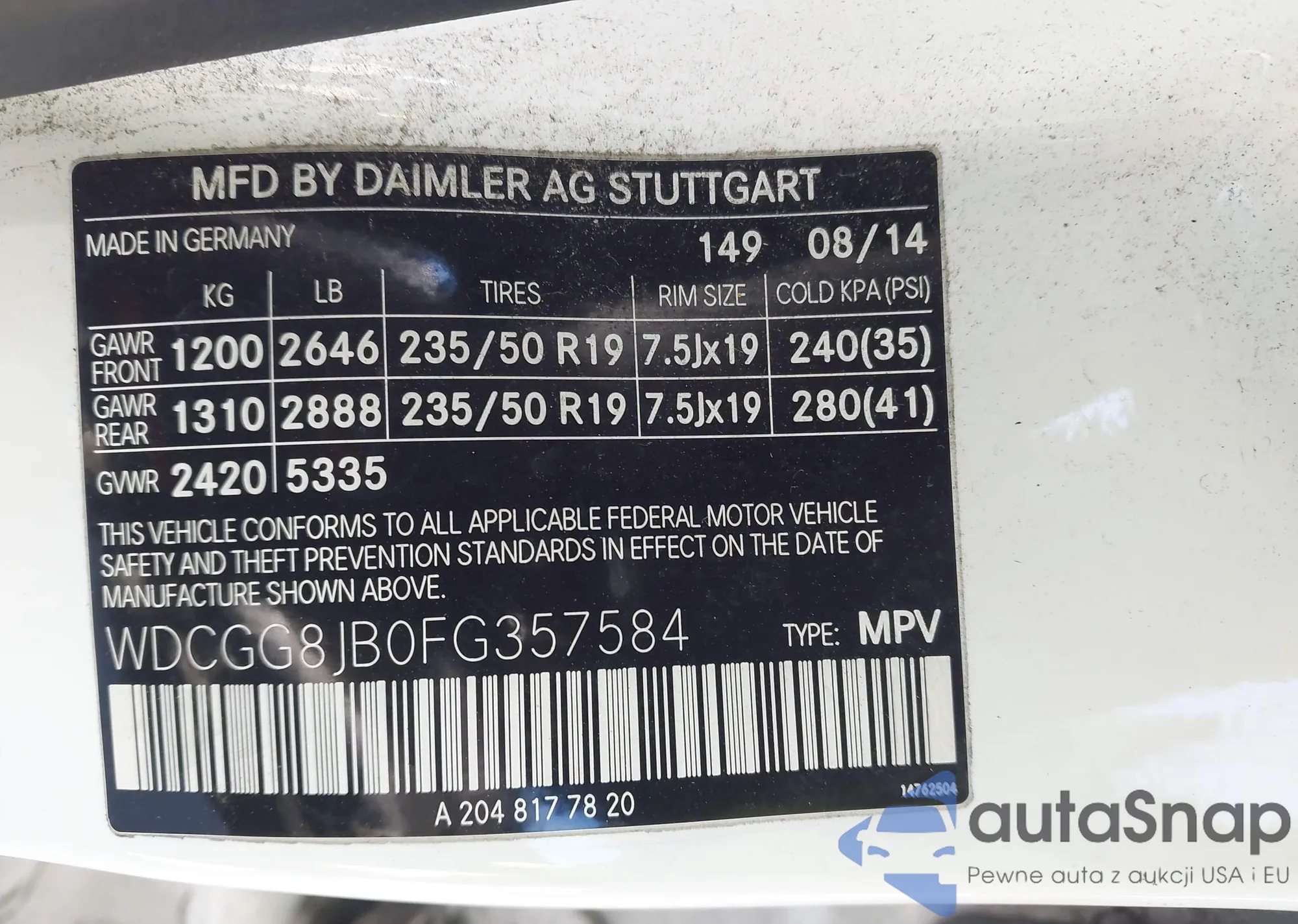 • VIN: WDCGG8JB0FG357584