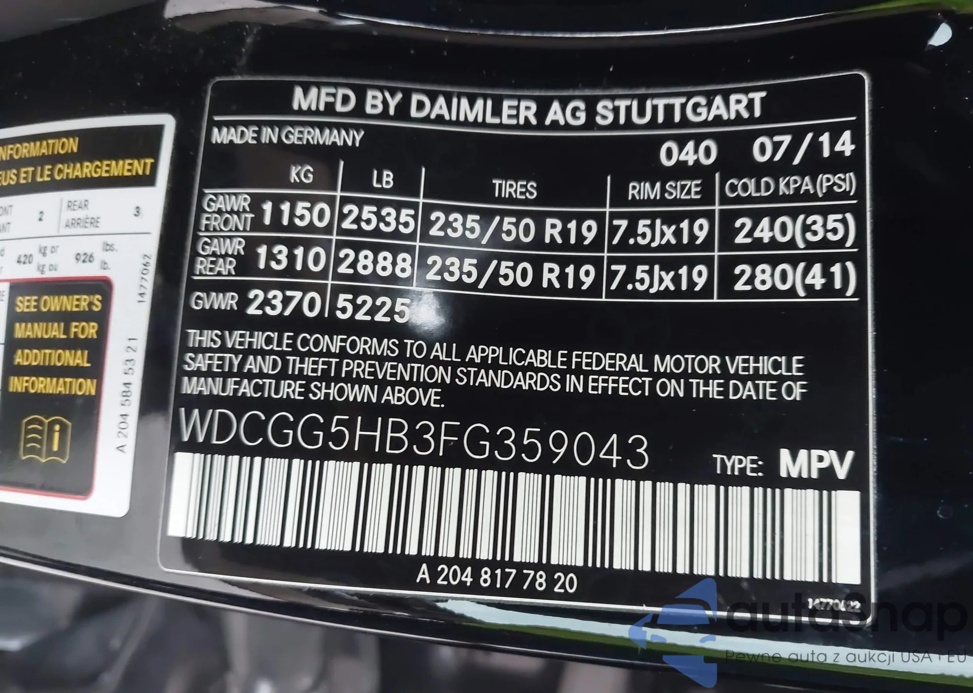 • VIN: WDCGG5HB3FG359043
