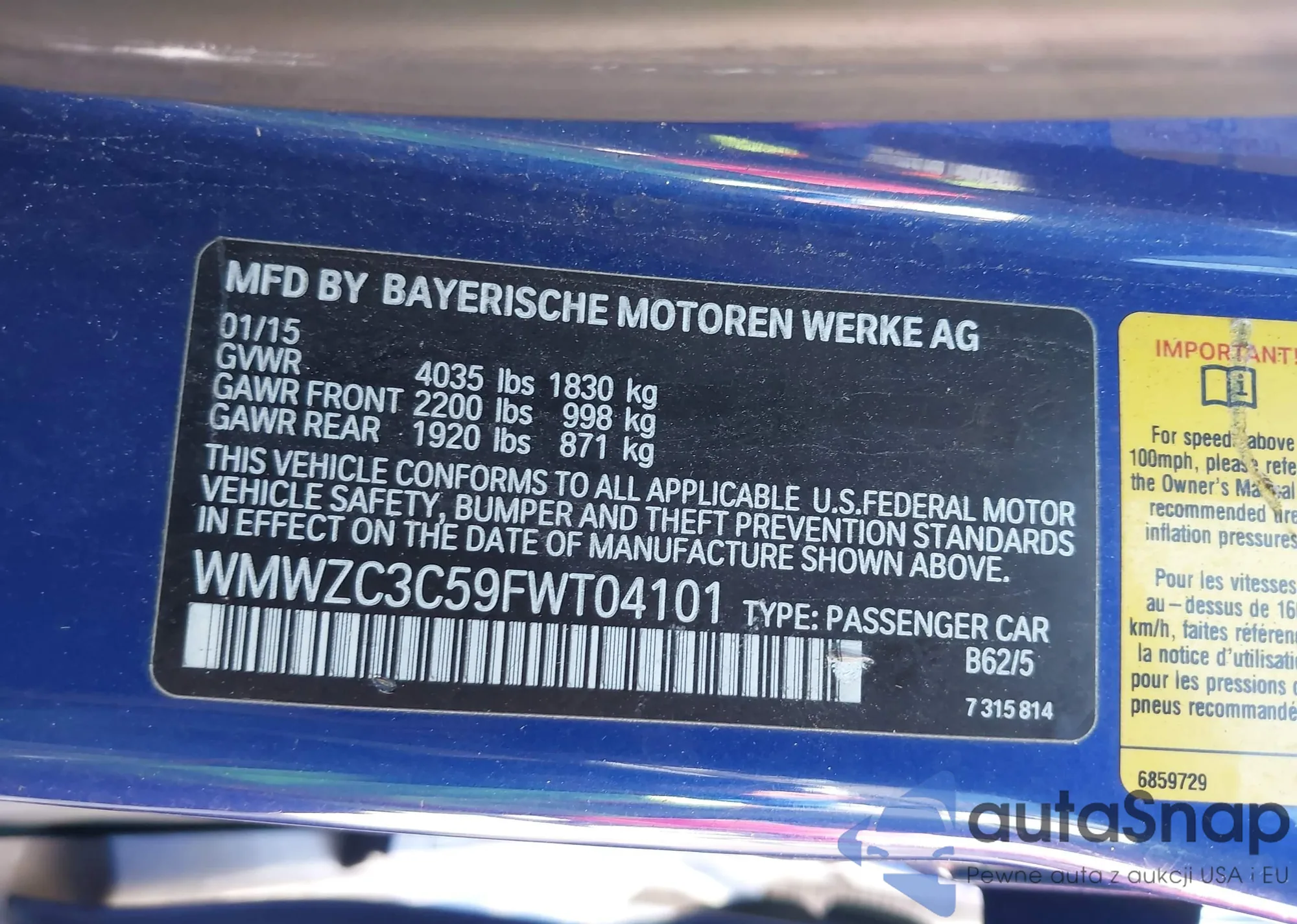 VIN: WMWZC3C59FWT04101