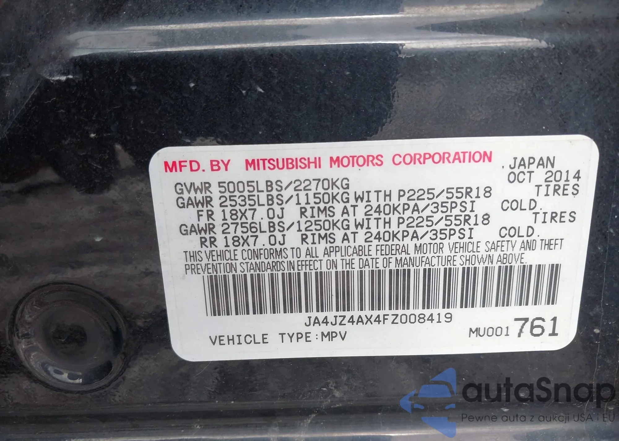 Автомобиль Mitsubishi Outlander 2015 (VIN JA4JZ4AX4FZ008419) ранее не участвовал в торгах. Документы чистые, пробег соответствует или ниже среднего по рынку. Продаётся страховой компанией — рекомендуем покупку. Доставка в порт займет около 6–8 недель.