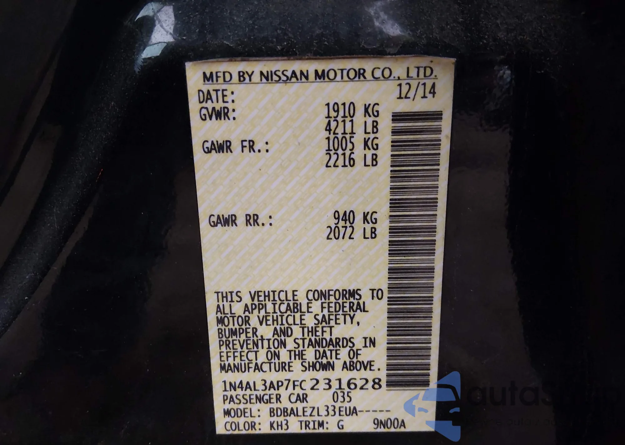 VIN: 1N4AL3AP7FC231628