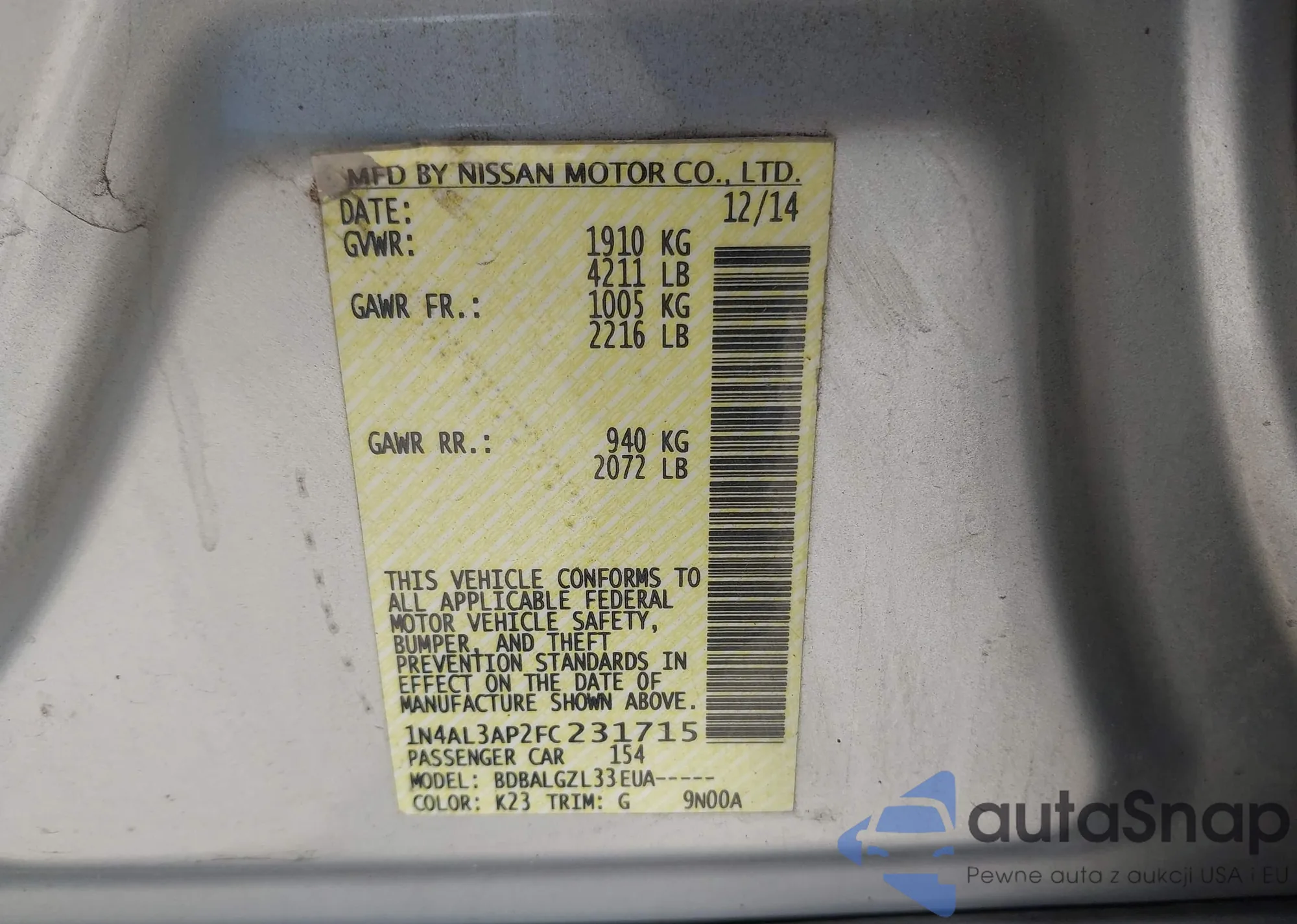VIN: 1N4AL3AP2FC231715