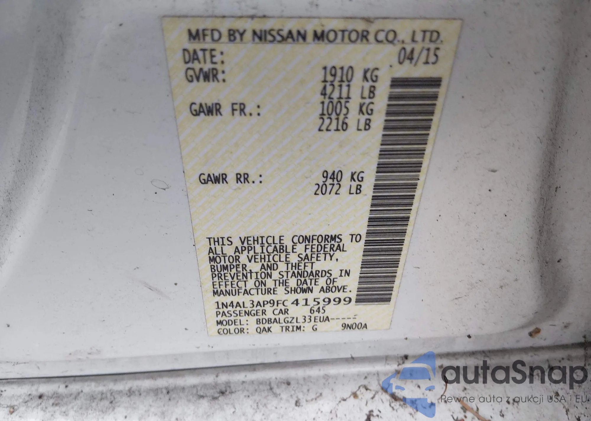 VIN: 1N4AL3AP9FC415999