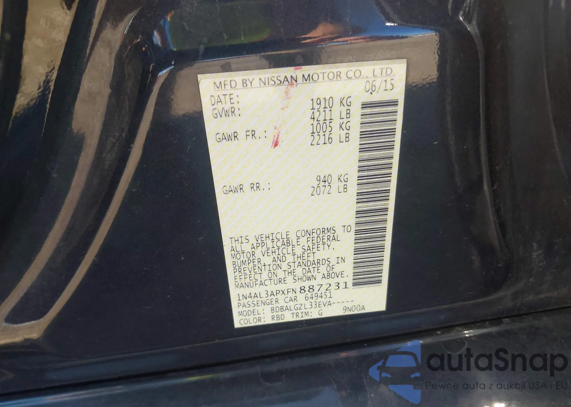 VIN: 1N4AL3APXFN887231
