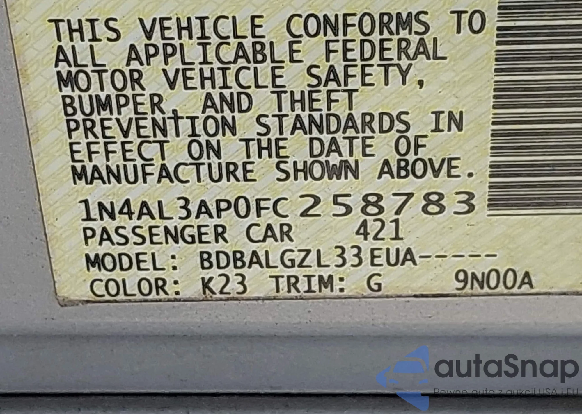 VIN: 1N4AL3AP0FC258783
