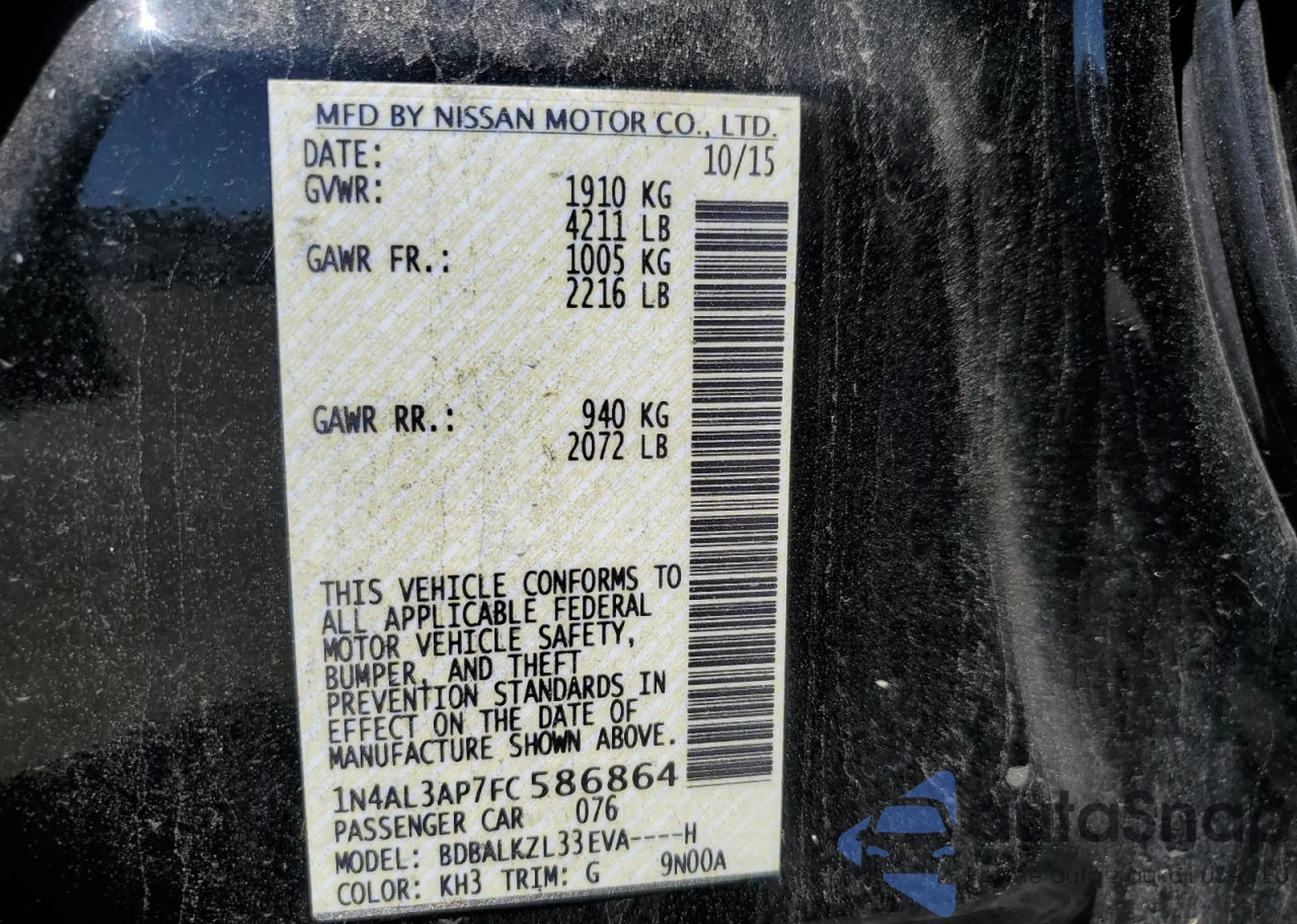 VIN: 1N4AL3AP7FC586864