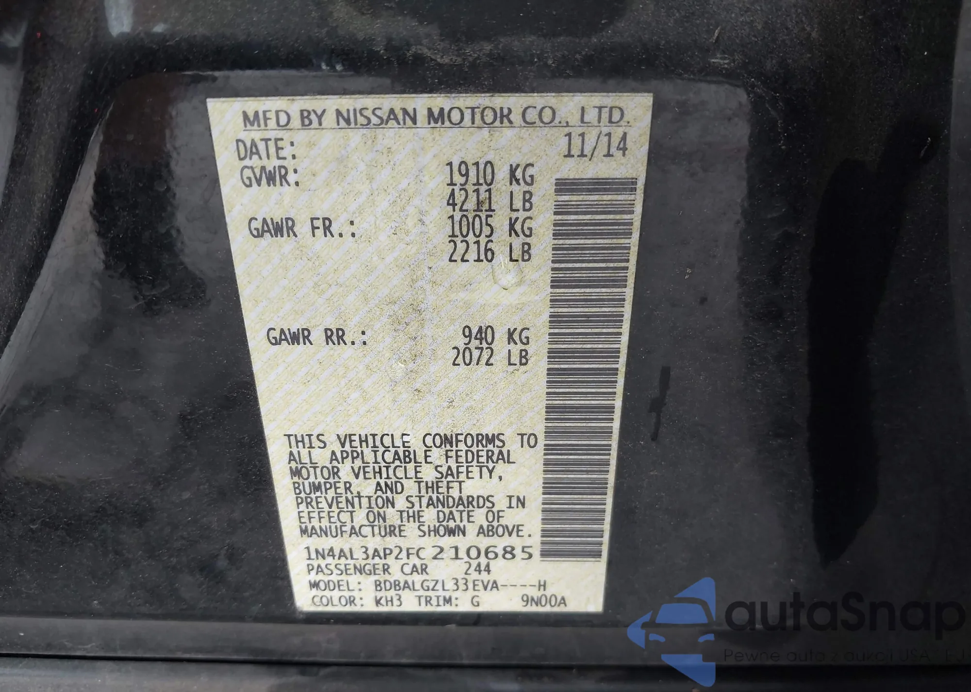 VIN: 1N4AL3AP2FC210685
