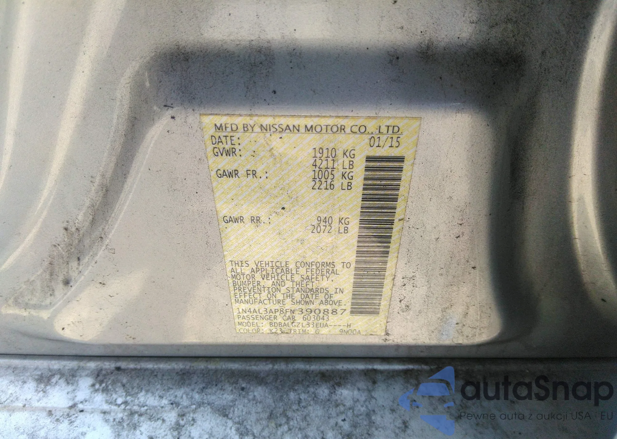 VIN: 1N4AL3AP8FN390887