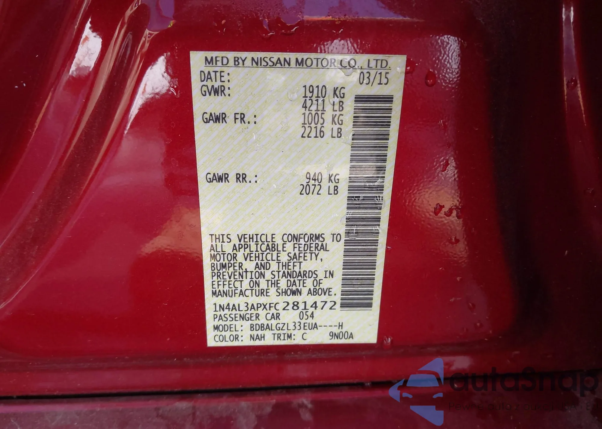 VIN: 1N4AL3APXFC281472