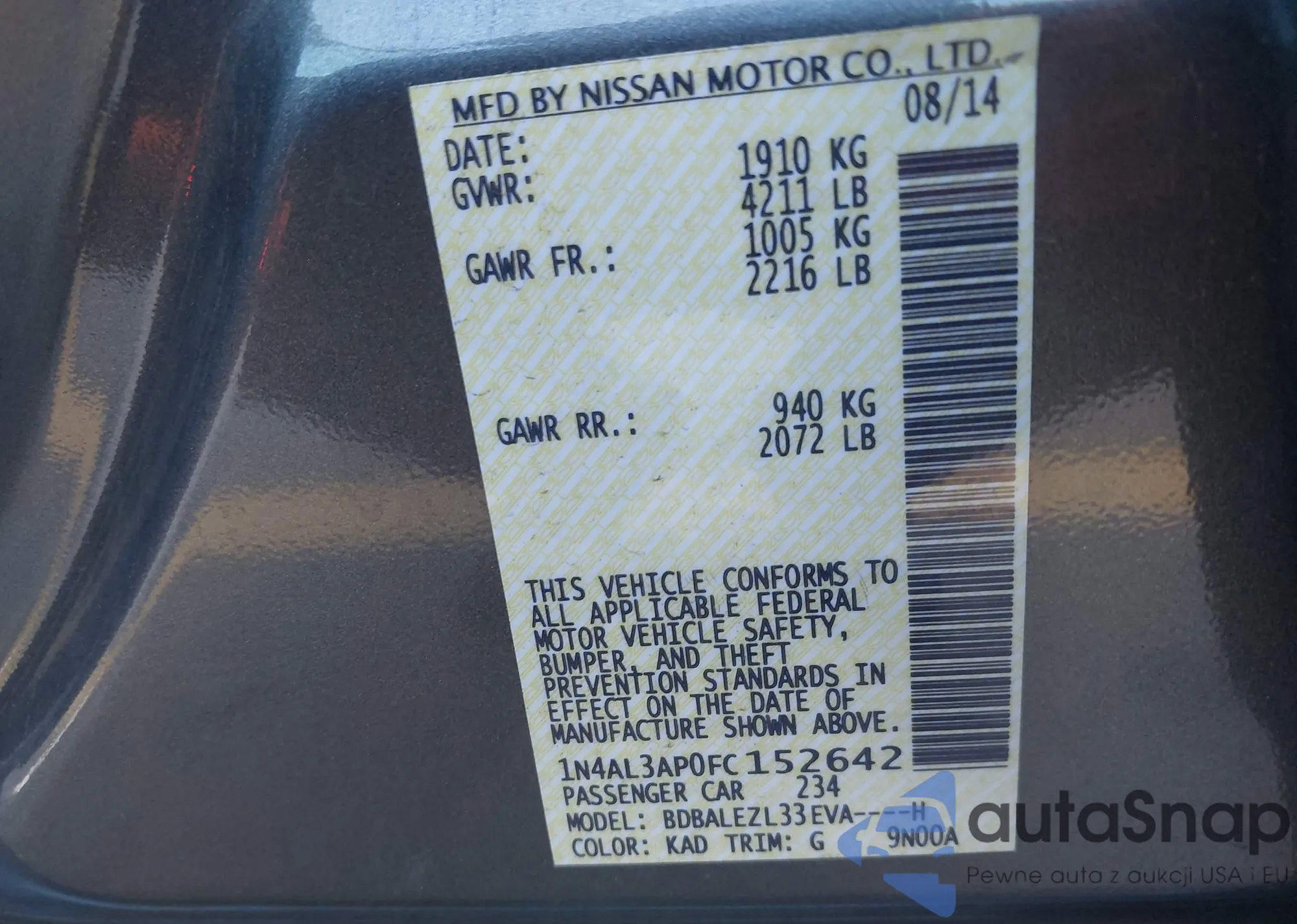 VIN: 1N4AL3AP0FC152642