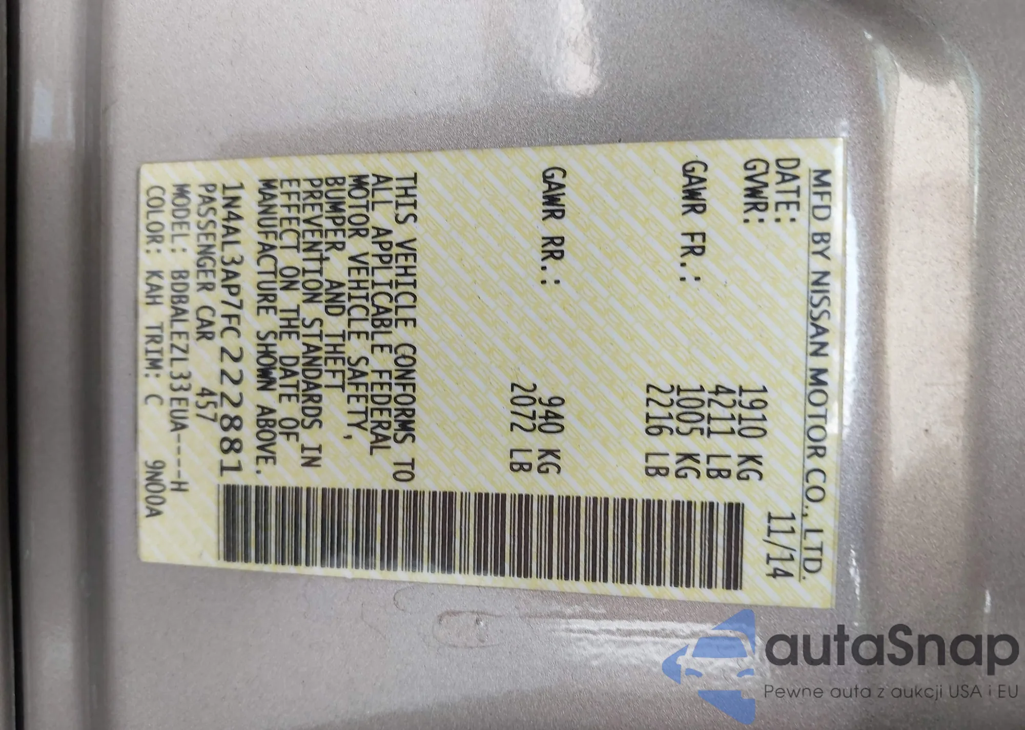 VIN: 1N4AL3AP7FC222881