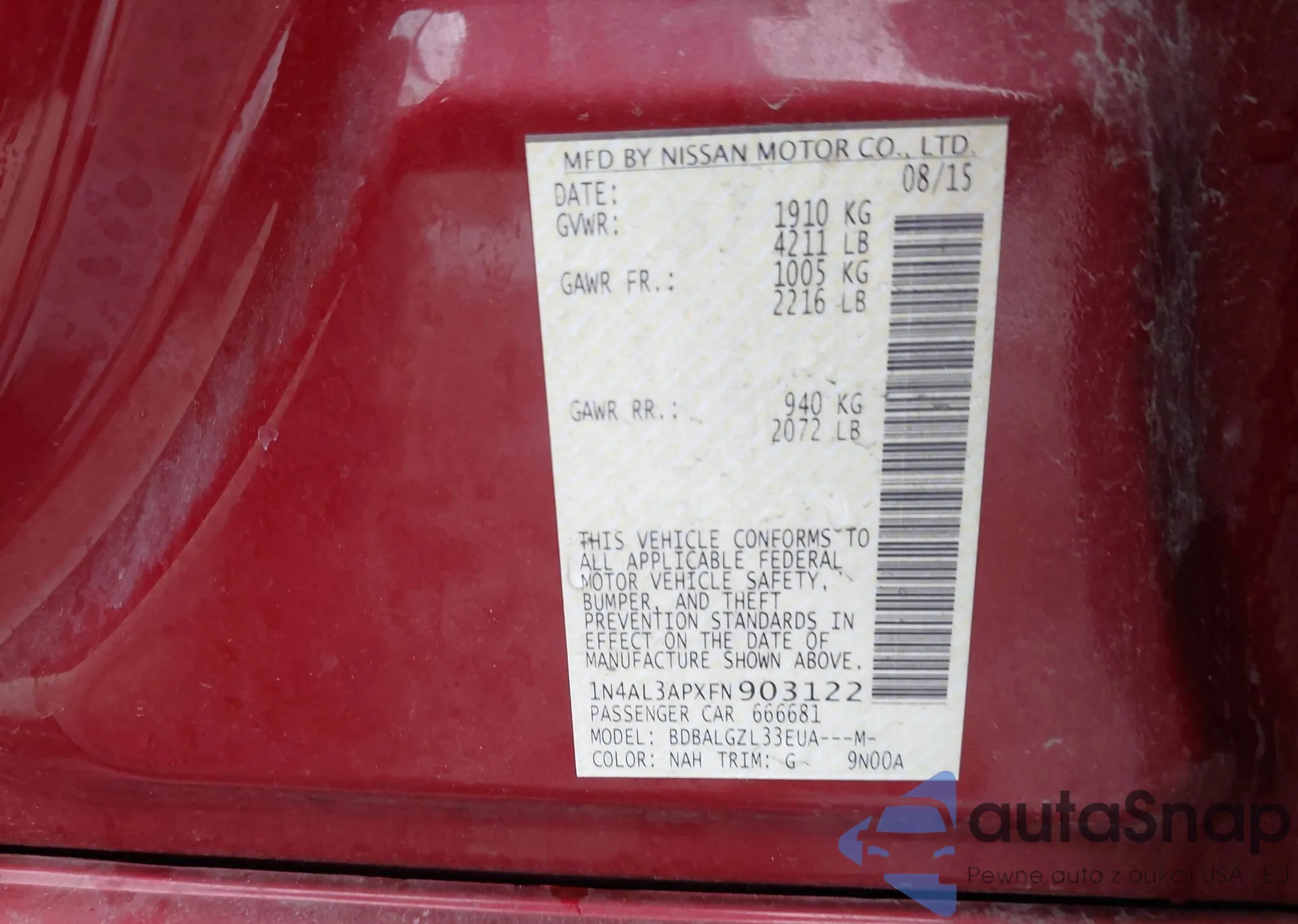 VIN: 1N4AL3APXFN903122