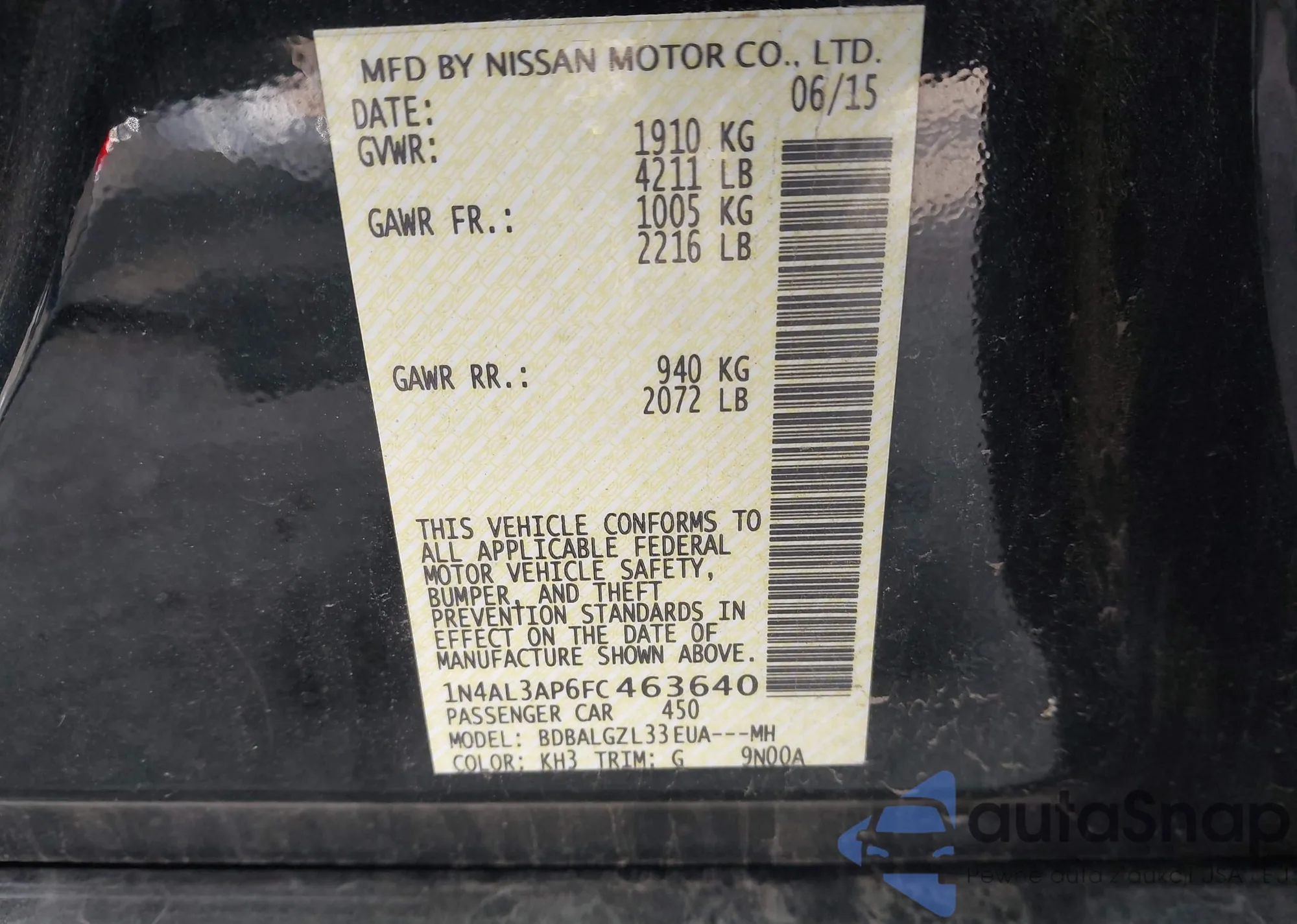 VIN: 1N4AL3AP6FC463640