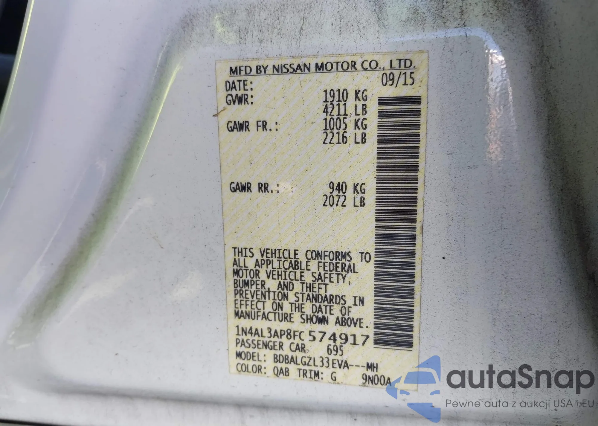 VIN: 1N4AL3AP8FC574917