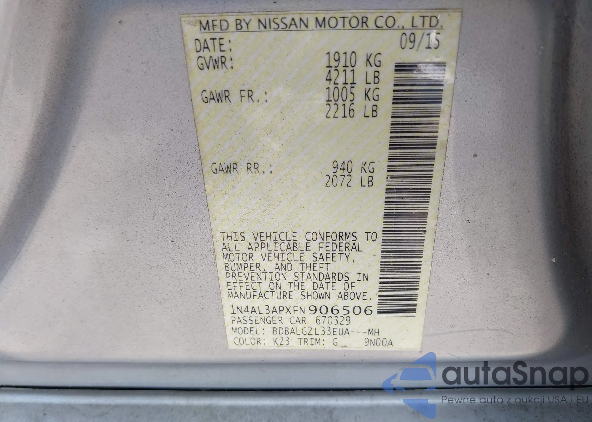 VIN: 1N4AL3APXFN906506