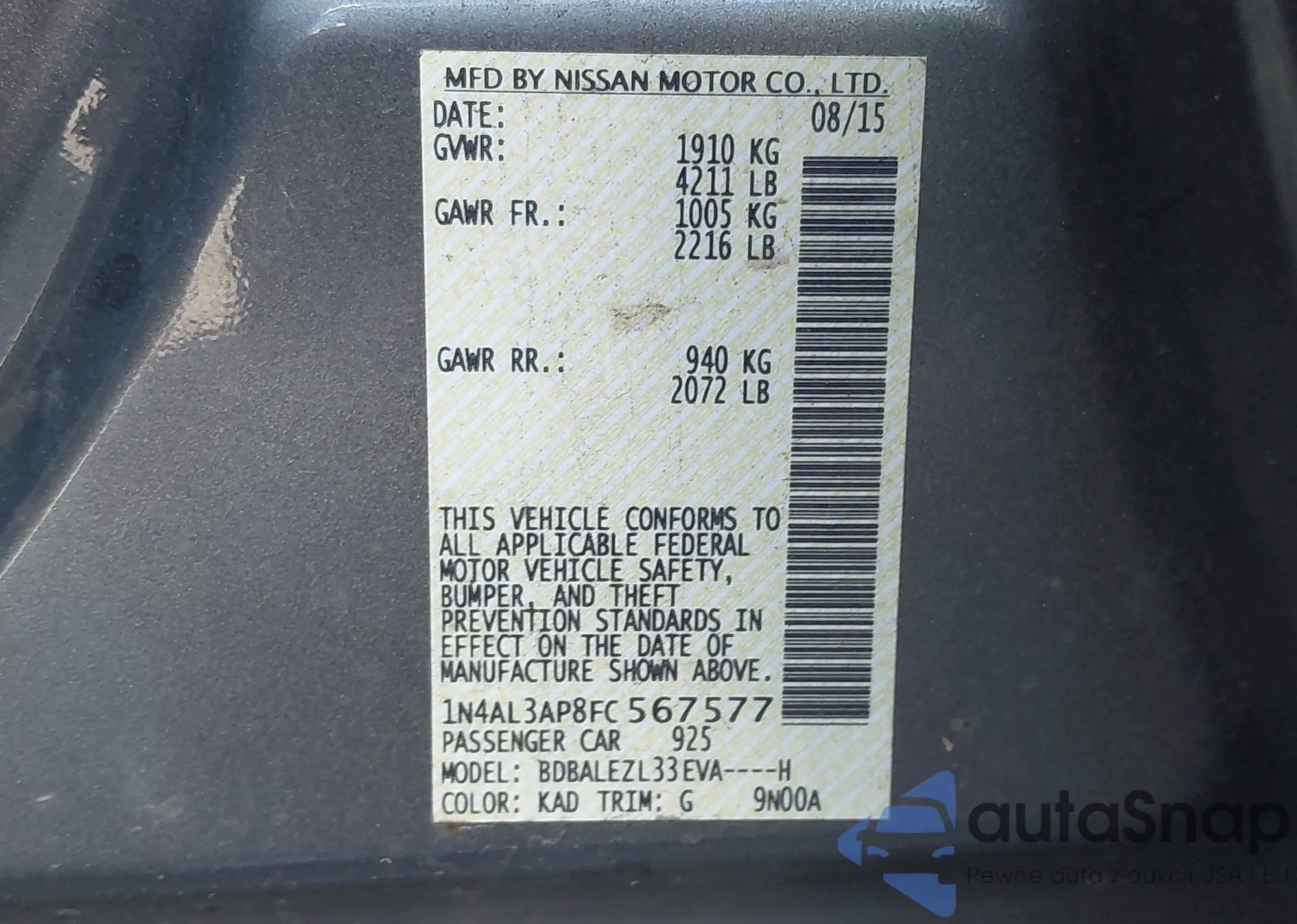 VIN: 1N4AL3AP8FC567577