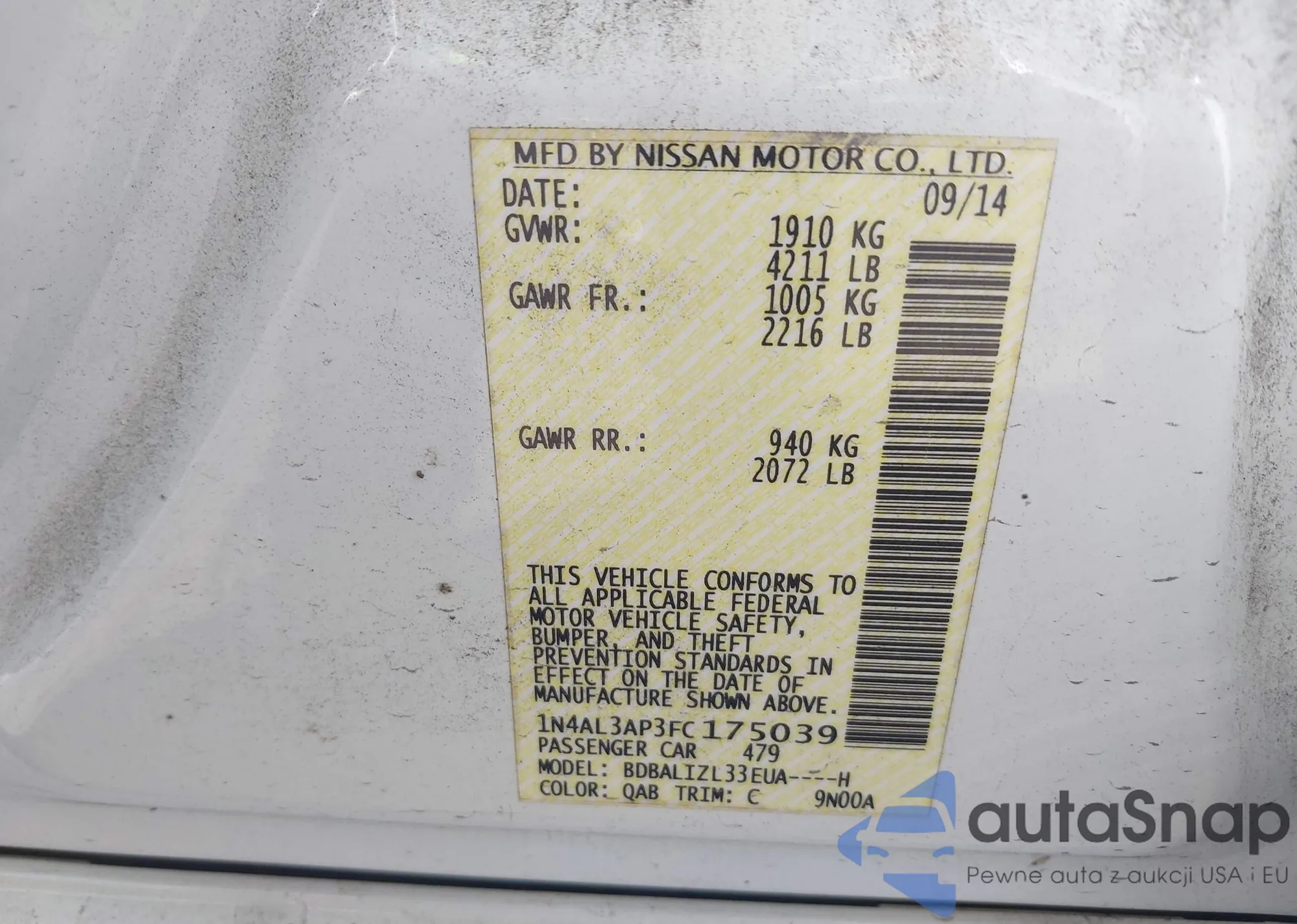 VIN: 1N4AL3AP3FC175039