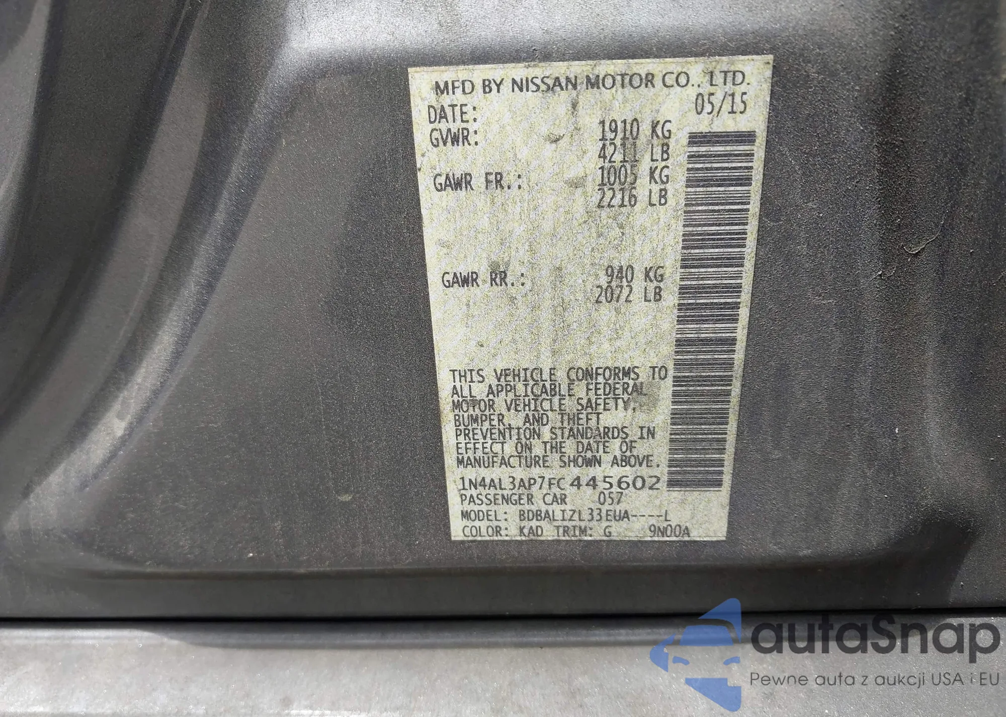 VIN: 1N4AL3AP7FC445602