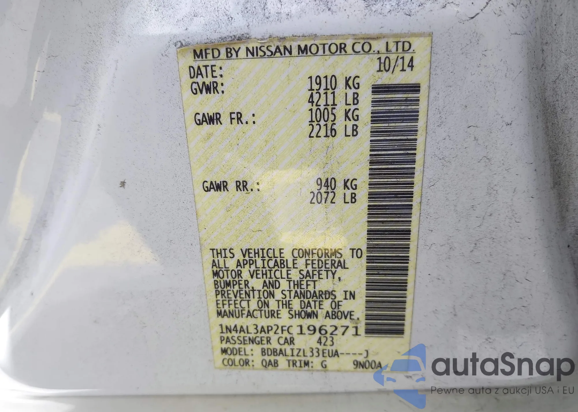 VIN: 1N4AL3AP2FC196271