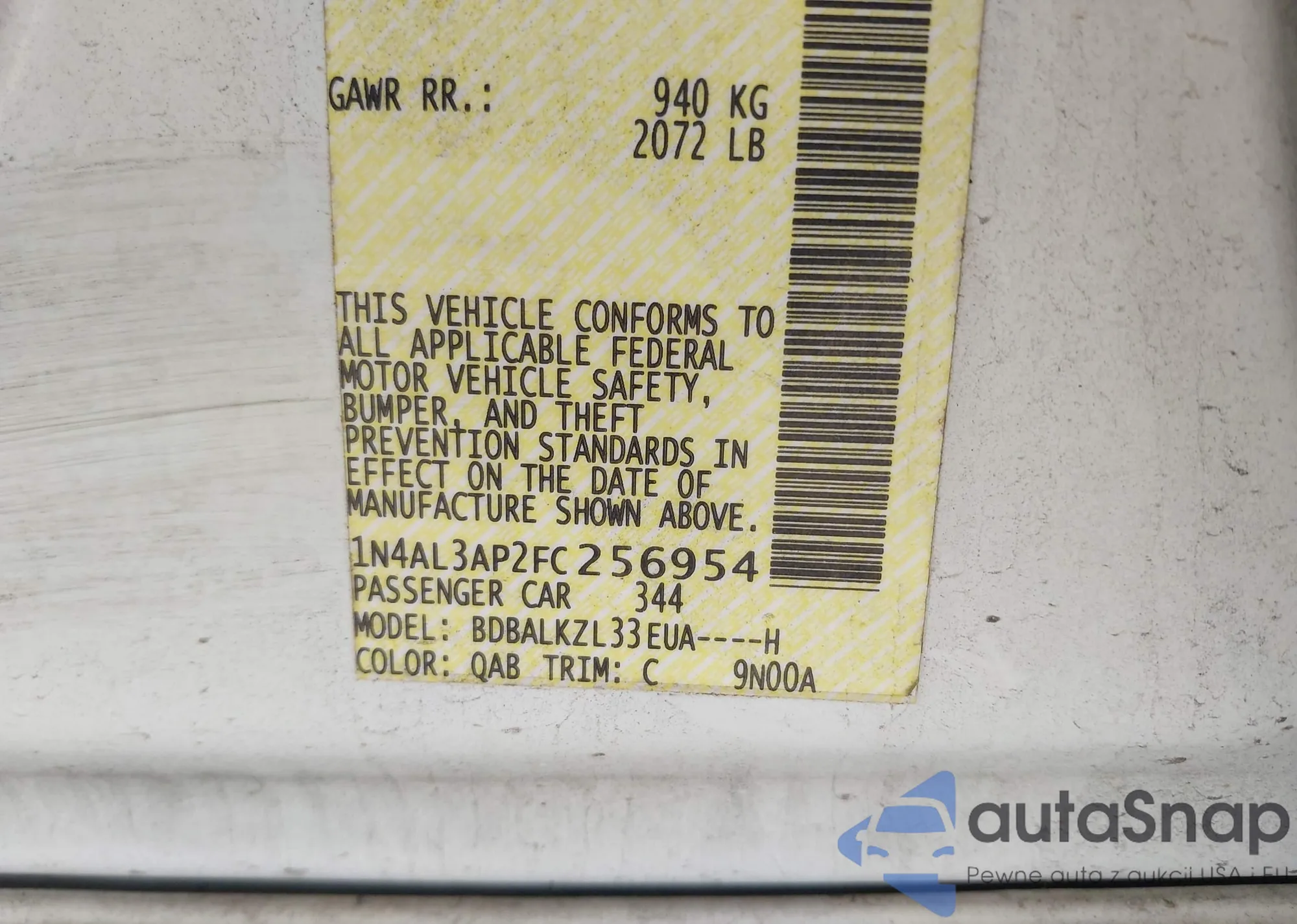 VIN: 1N4AL3AP2FC256954