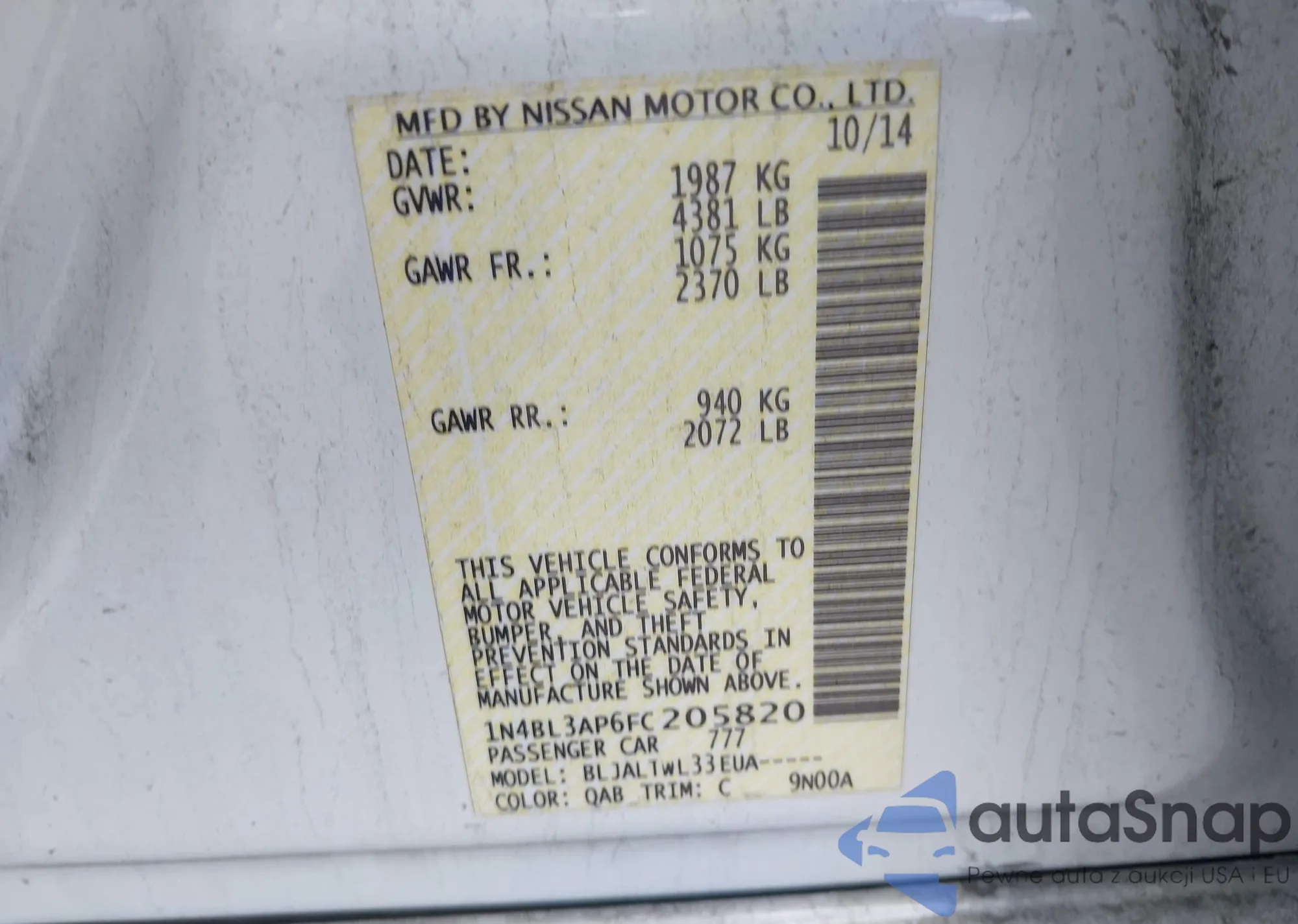 VIN: 1N4BL3AP6FC205820