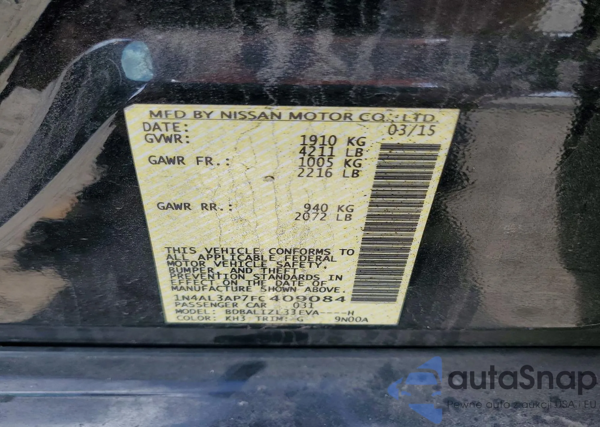 VIN: 1N4AL3AP7FC409084