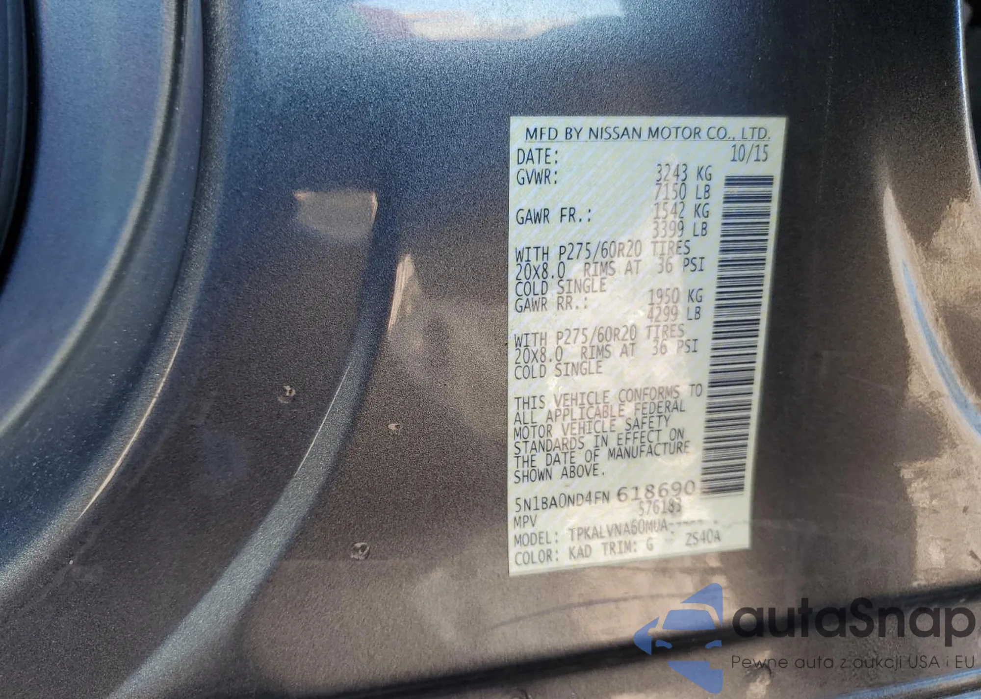 Nissan Armada 2015 – История автомобиля (продан на COPART)
