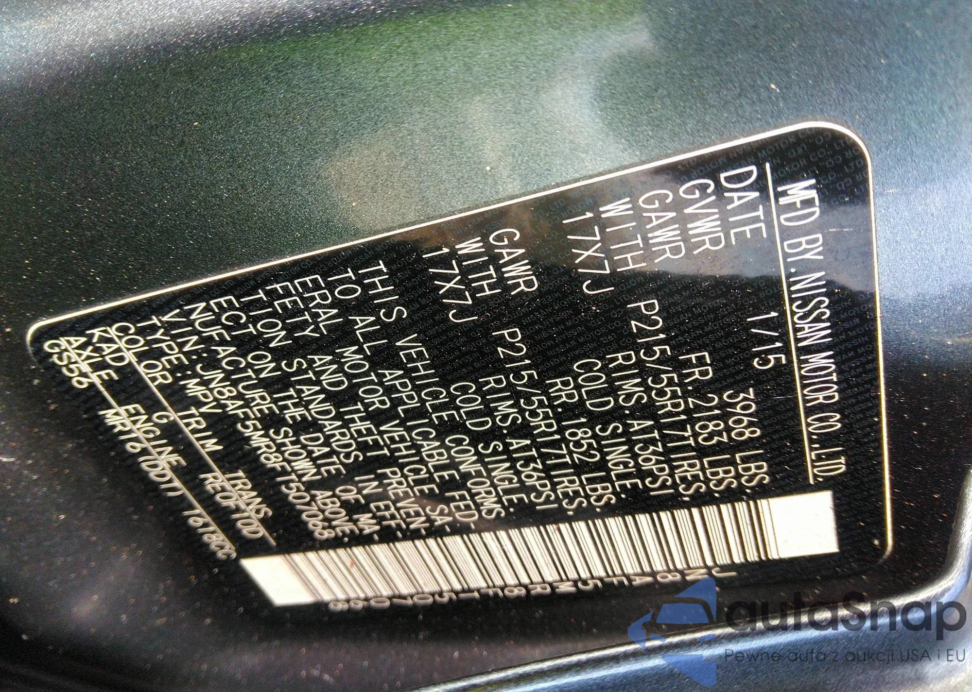 VIN: JN8AF5MR8FT507068
