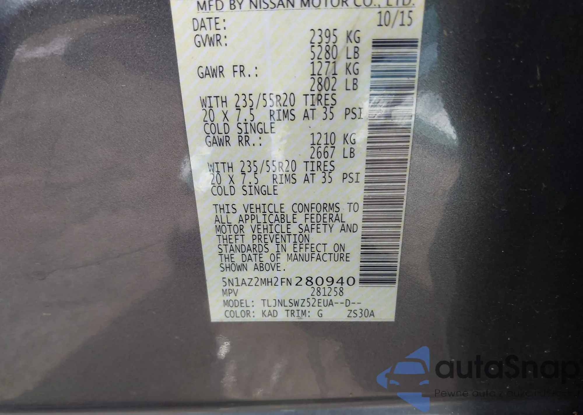 VIN: 5N1AZ2MH2FN280940