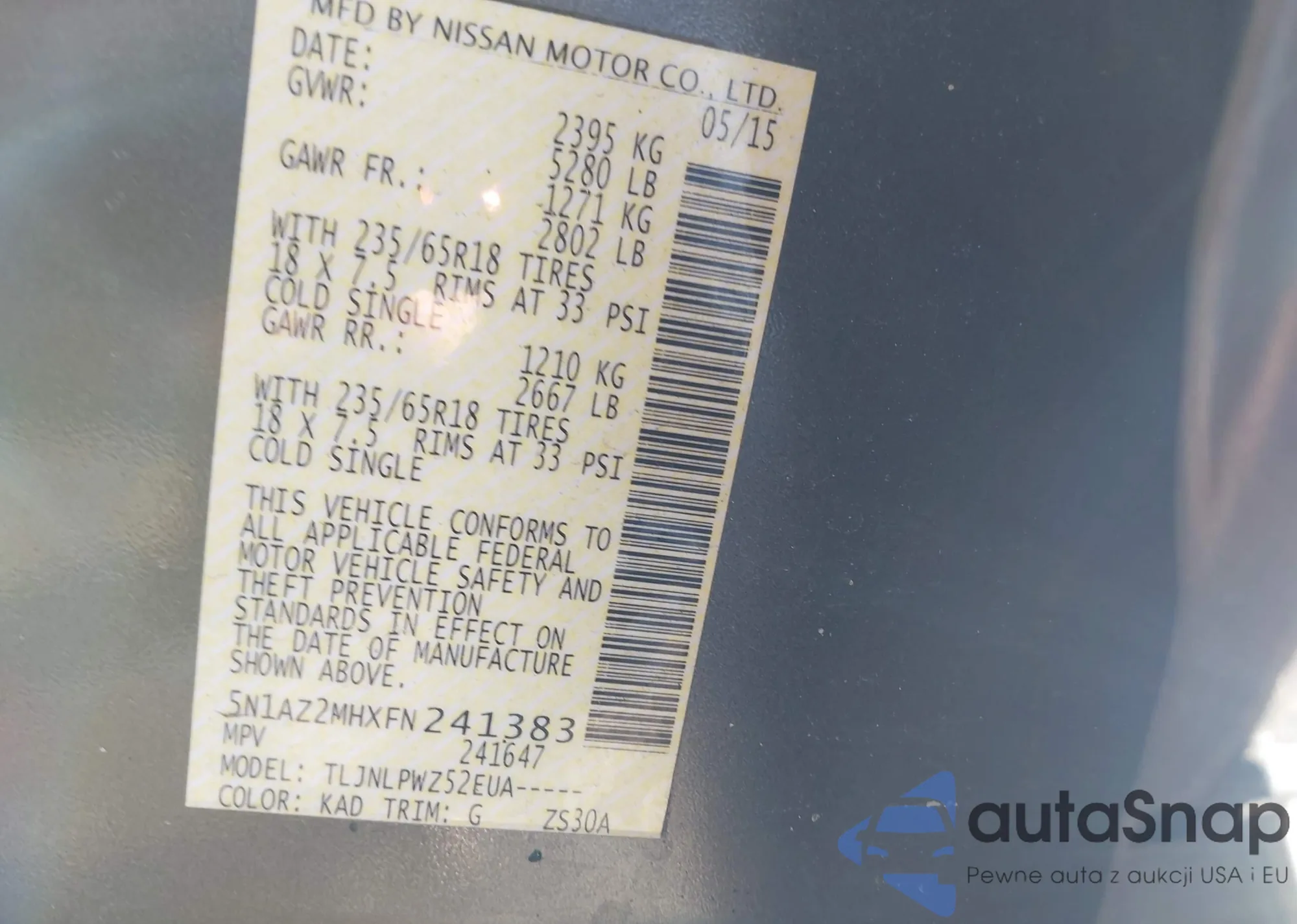 VIN: 5N1AZ2MHXFN241383