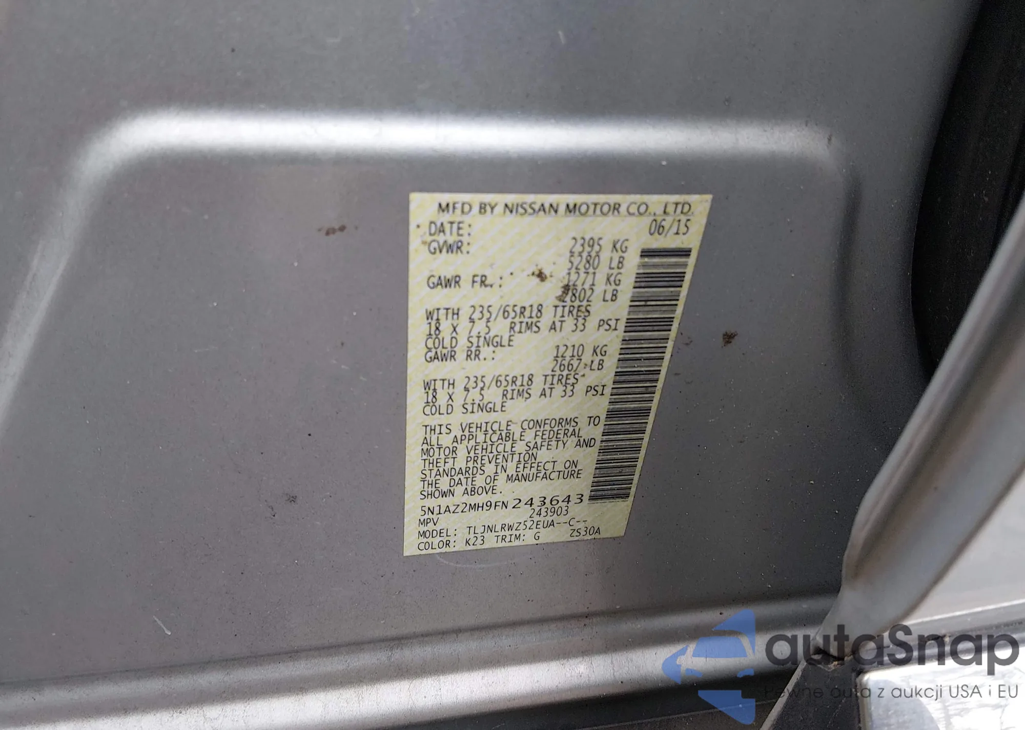 Автомобиль Nissan Murano 2015 (VIN 5N1AZ2MH9FN243643) продаётся непроверенным продавцом. Рекомендуем проверить отчет Carfax и подтвердить возможность регистрации перед покупкой.