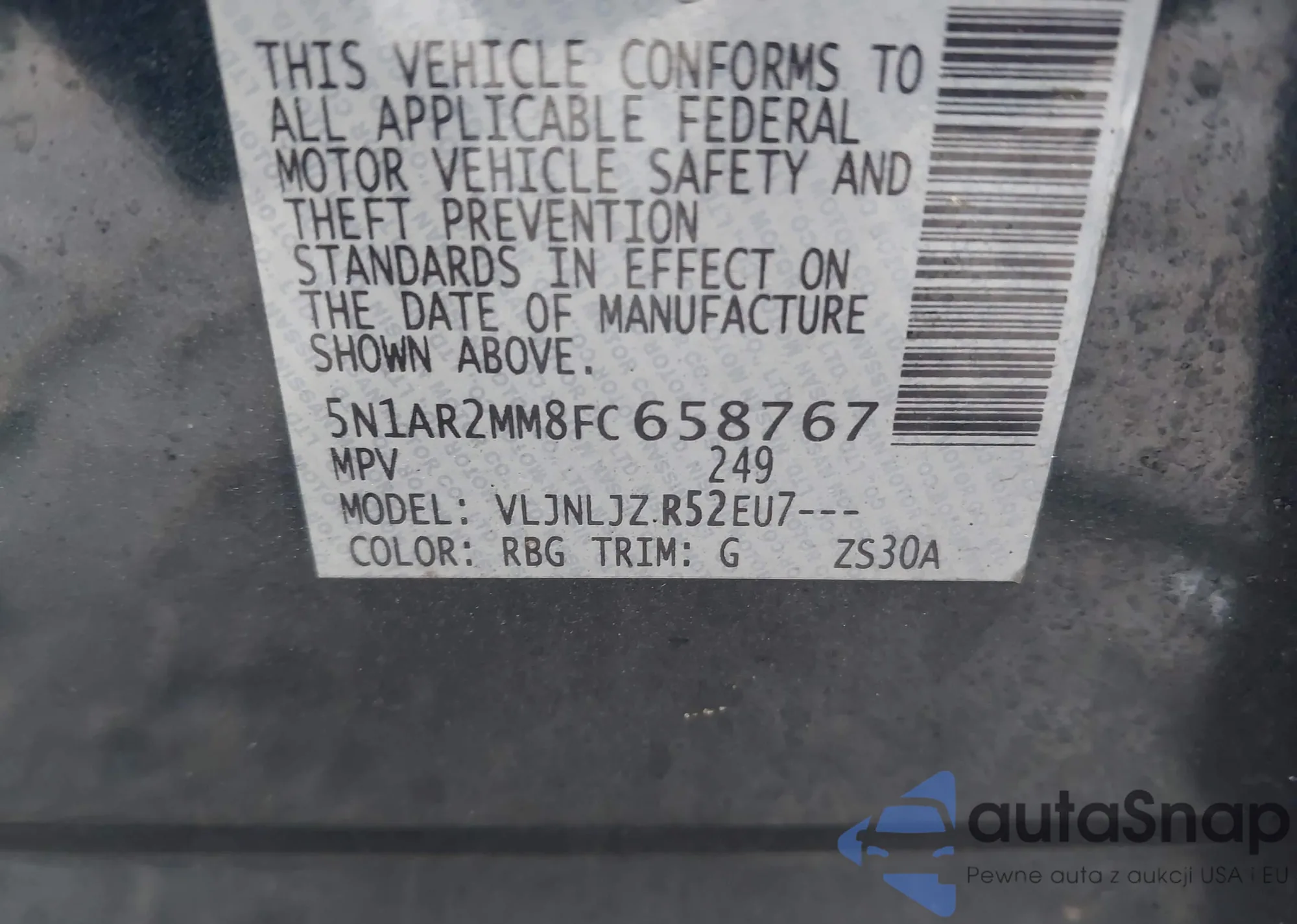 Автомобиль Nissan Pathfinder 2015 (VIN 5N1AR2MM8FC658767) ранее не участвовал в торгах. Документы чистые, пробег соответствует или ниже среднего по рынку. Продаётся страховой компанией — рекомендуем покупку. Доставка в порт займет около 6–8 недель.