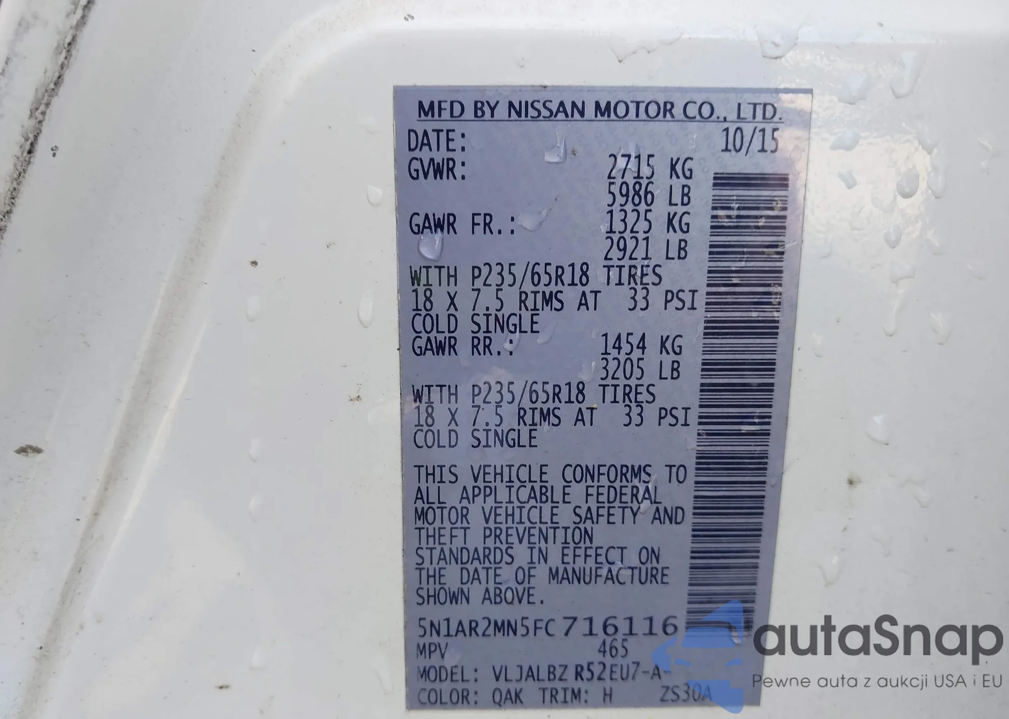 VIN: 5N1AR2MN5FC716116
