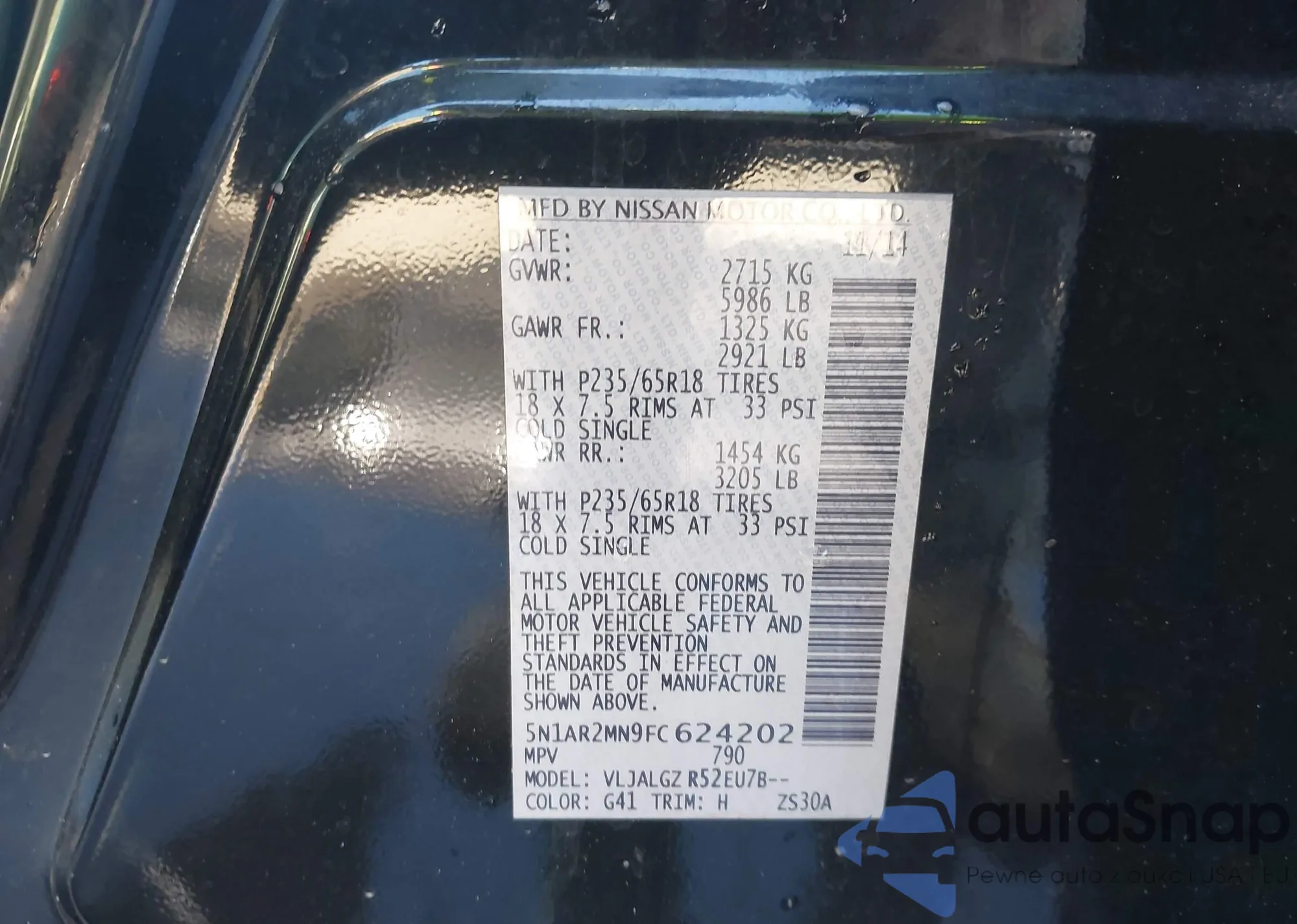 VIN: 5N1AR2MN9FC624202