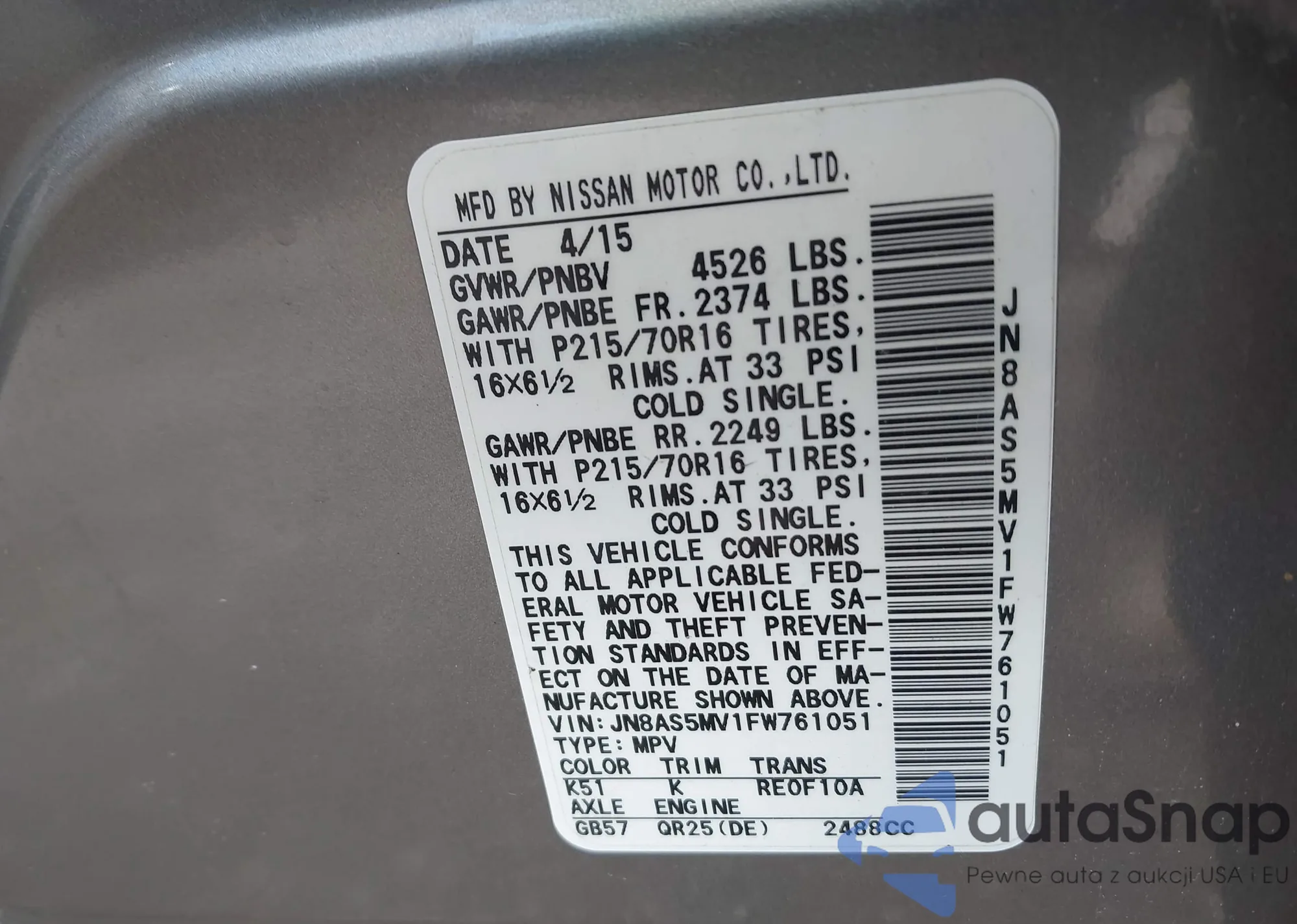 VIN: JN8AS5MV1FW761051