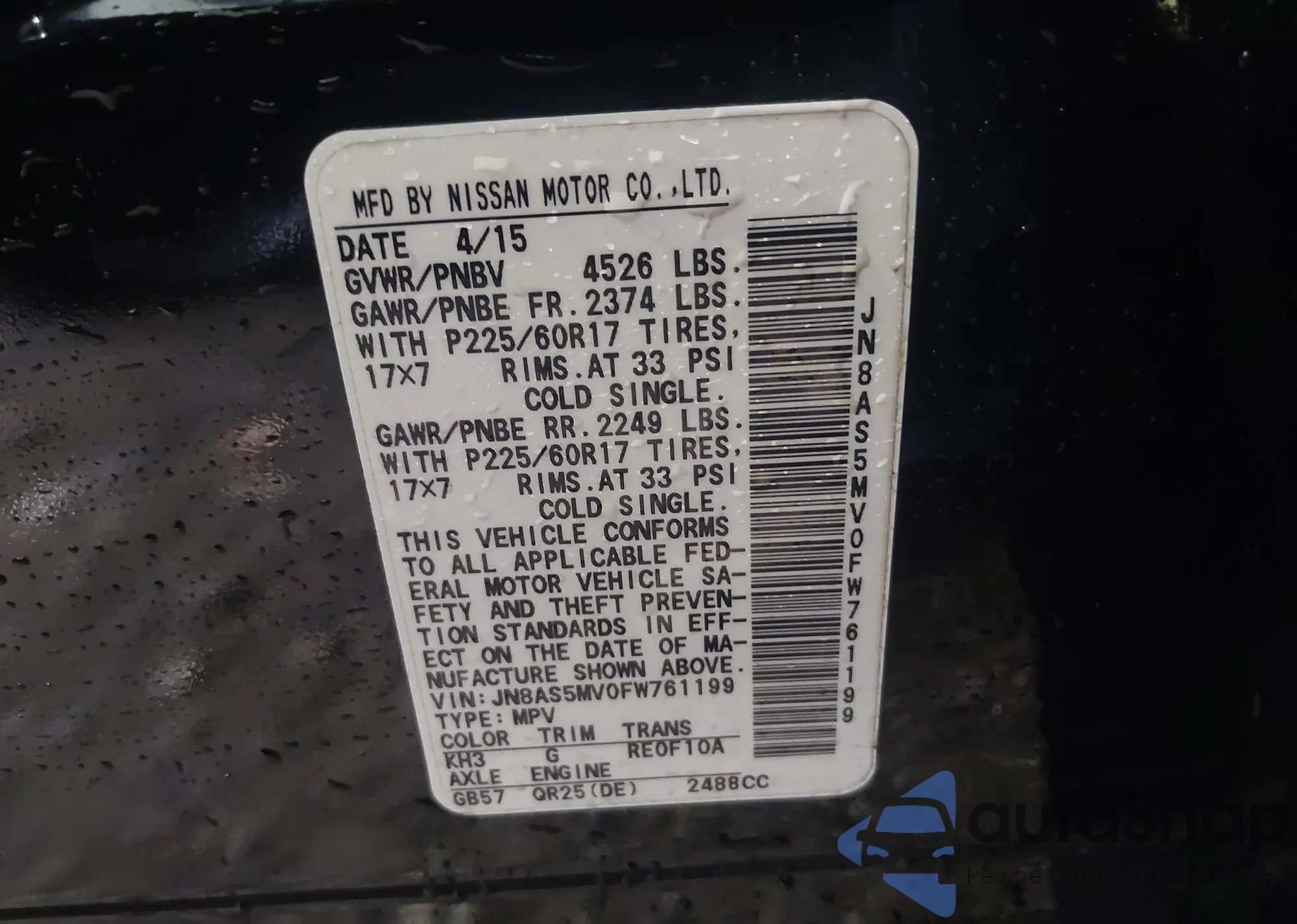 VIN: JN8AS5MV0FW761199