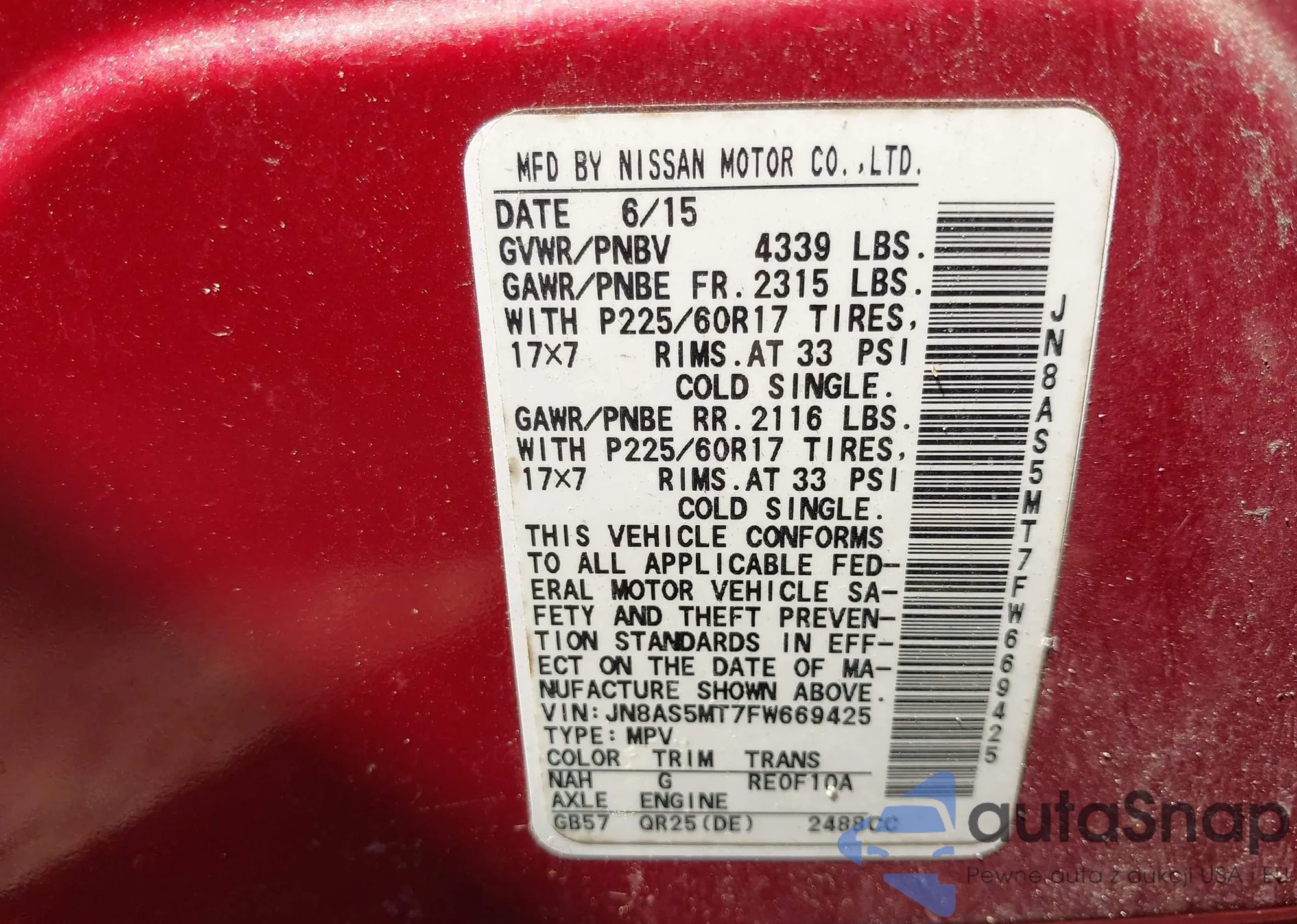 VIN: JN8AS5MT7FW669425