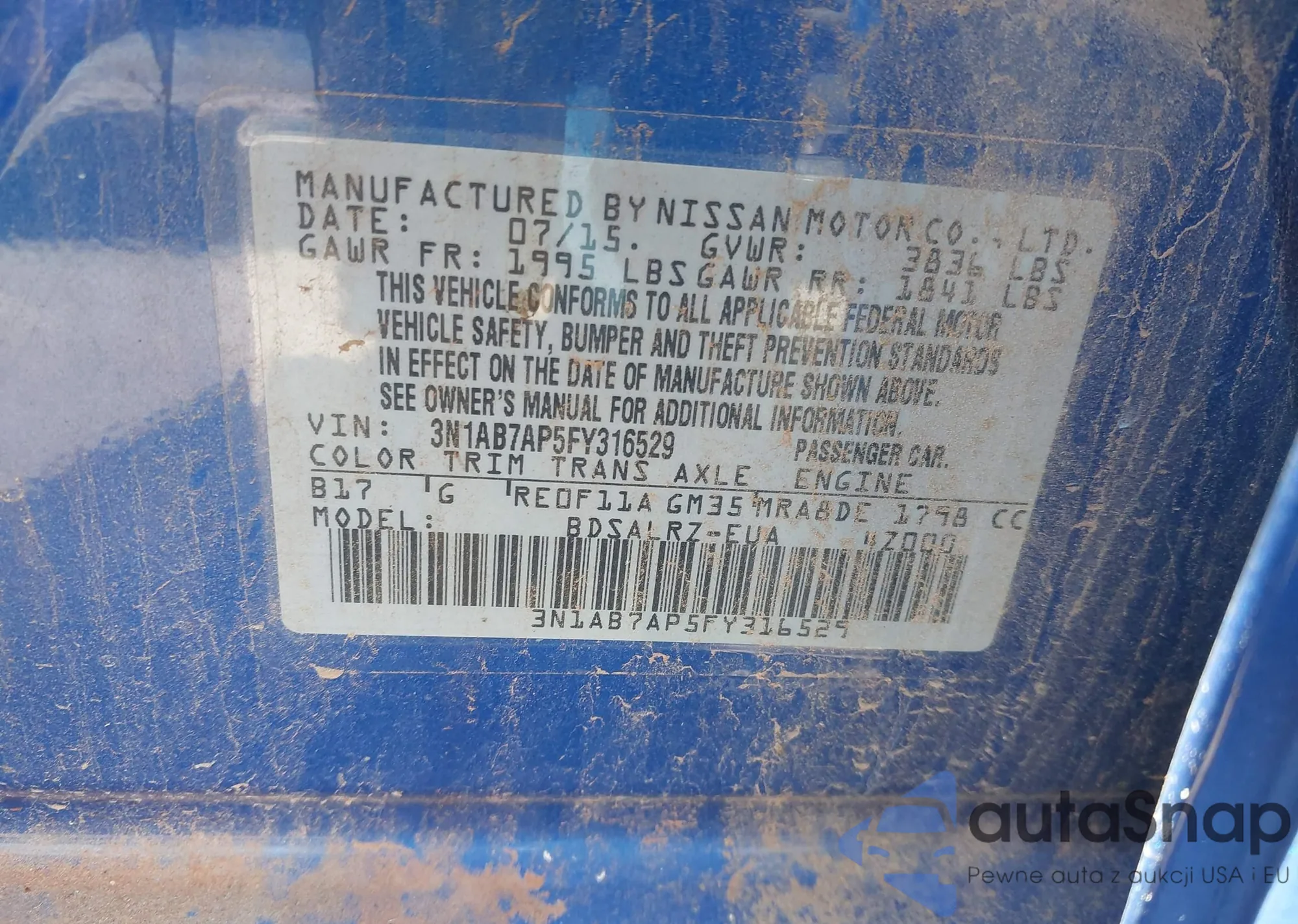VIN: 3N1AB7AP5FY316529