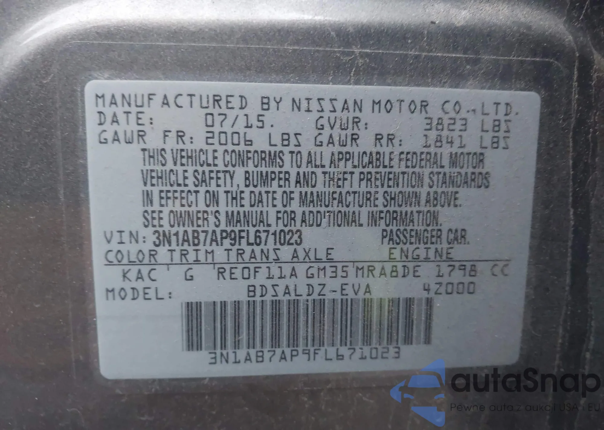 VIN: 3N1AB7AP9FL671023