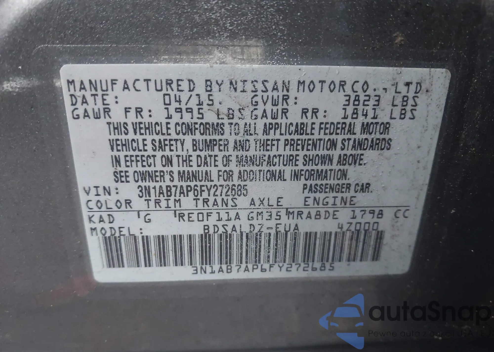 VIN: 3N1AB7AP6FY272685
