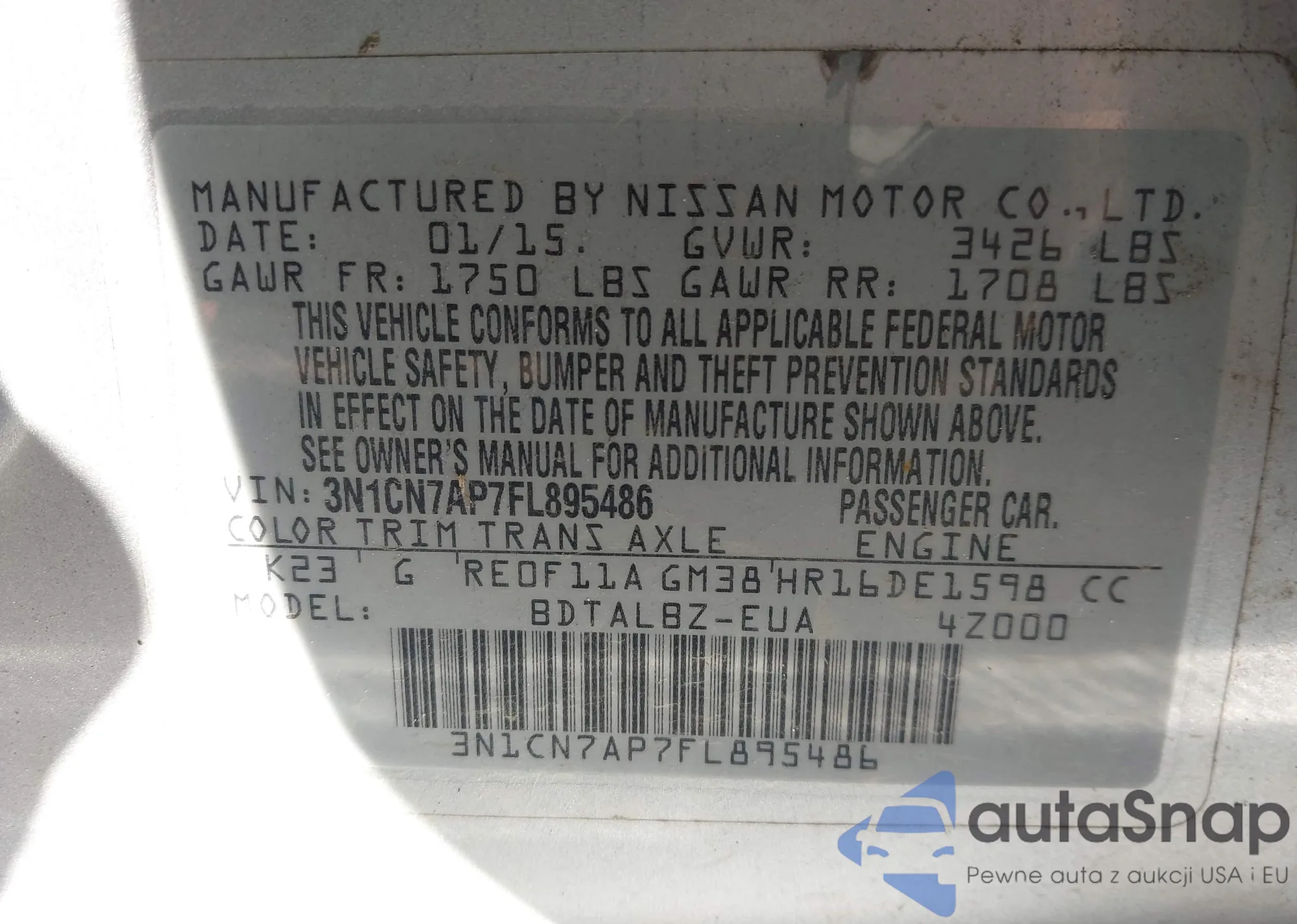VIN: 3N1CN7AP7FL895486