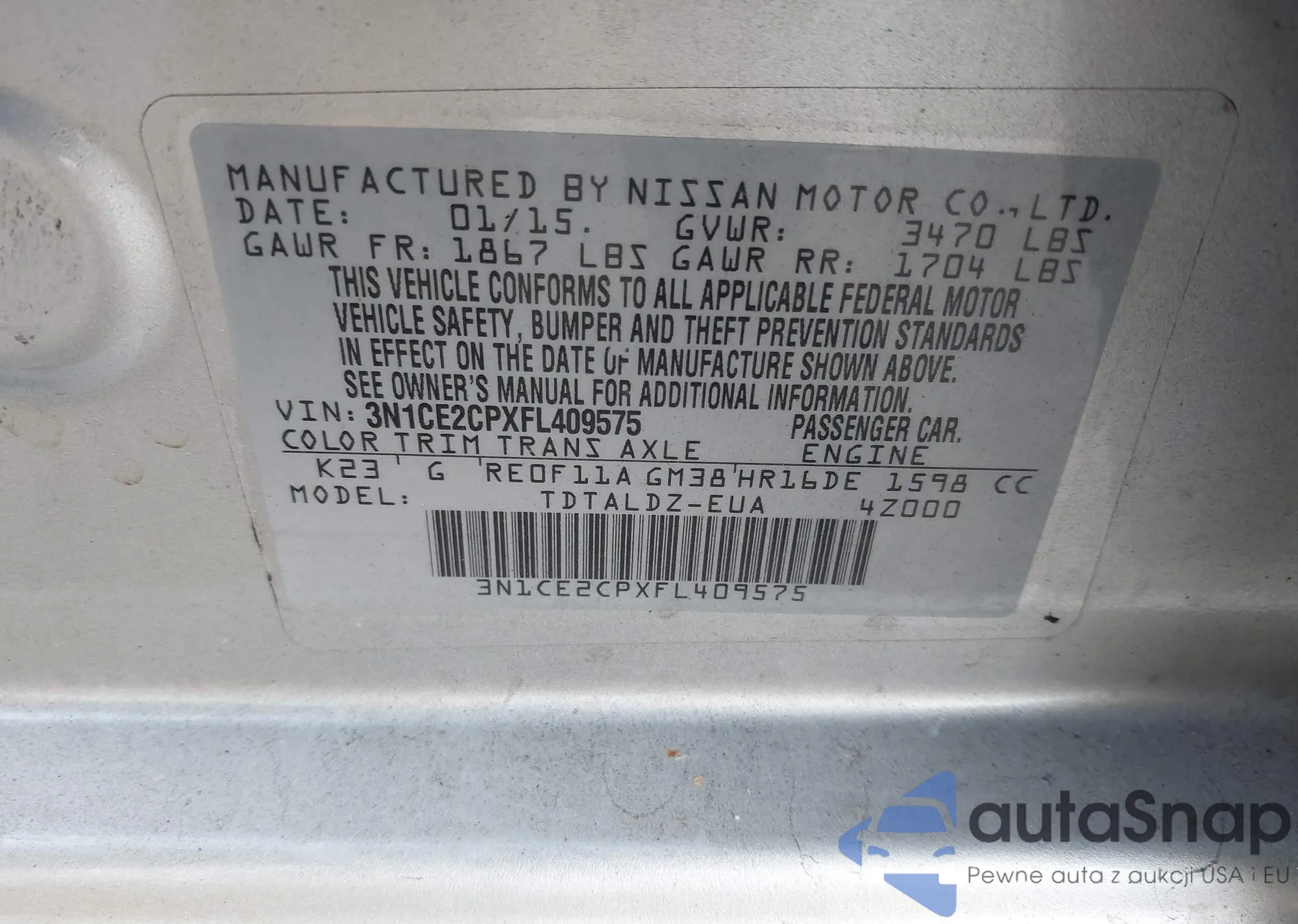 VIN: 3N1CE2CPXFL409575