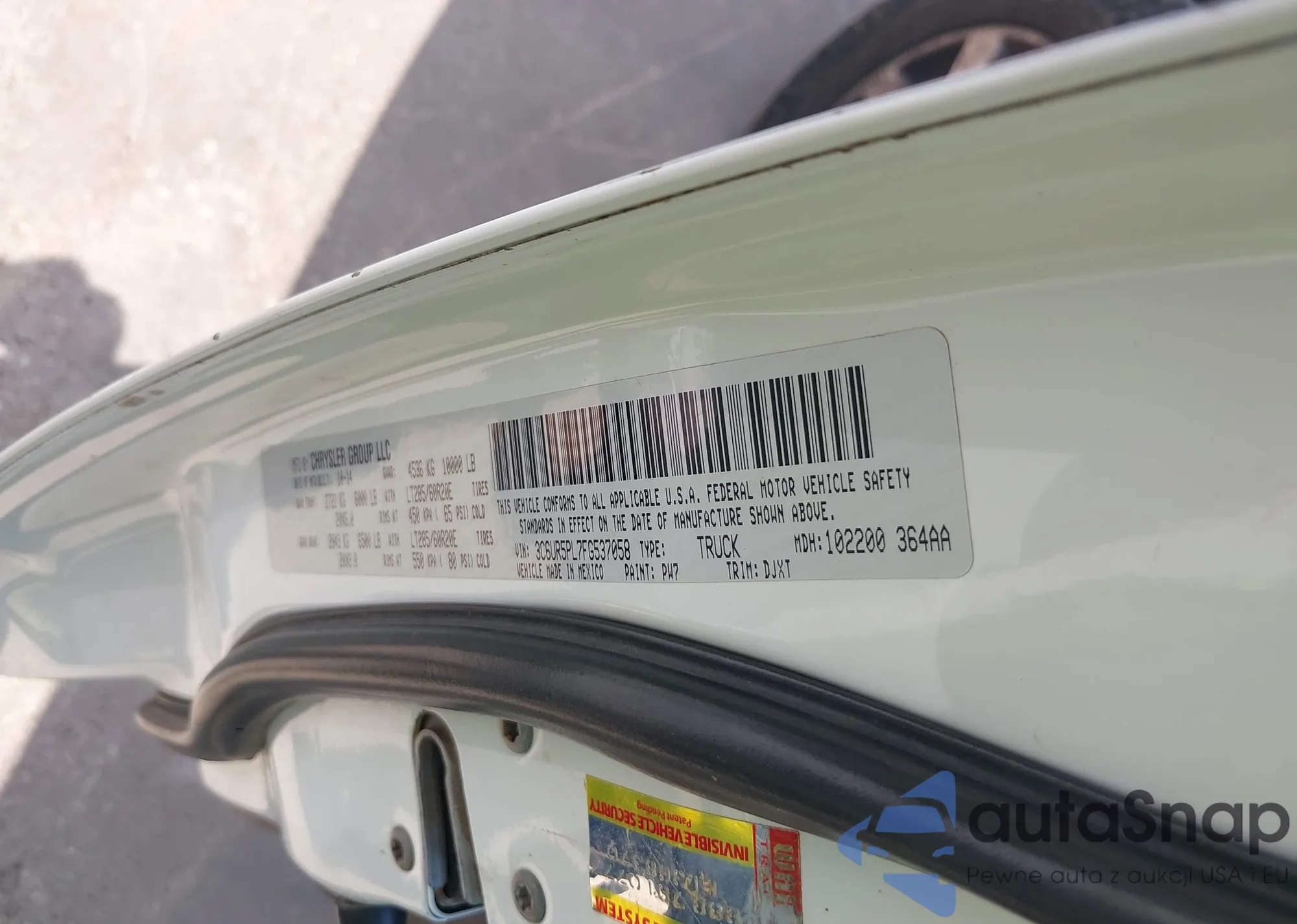 • VIN: 3C6UR5PL7FG537058