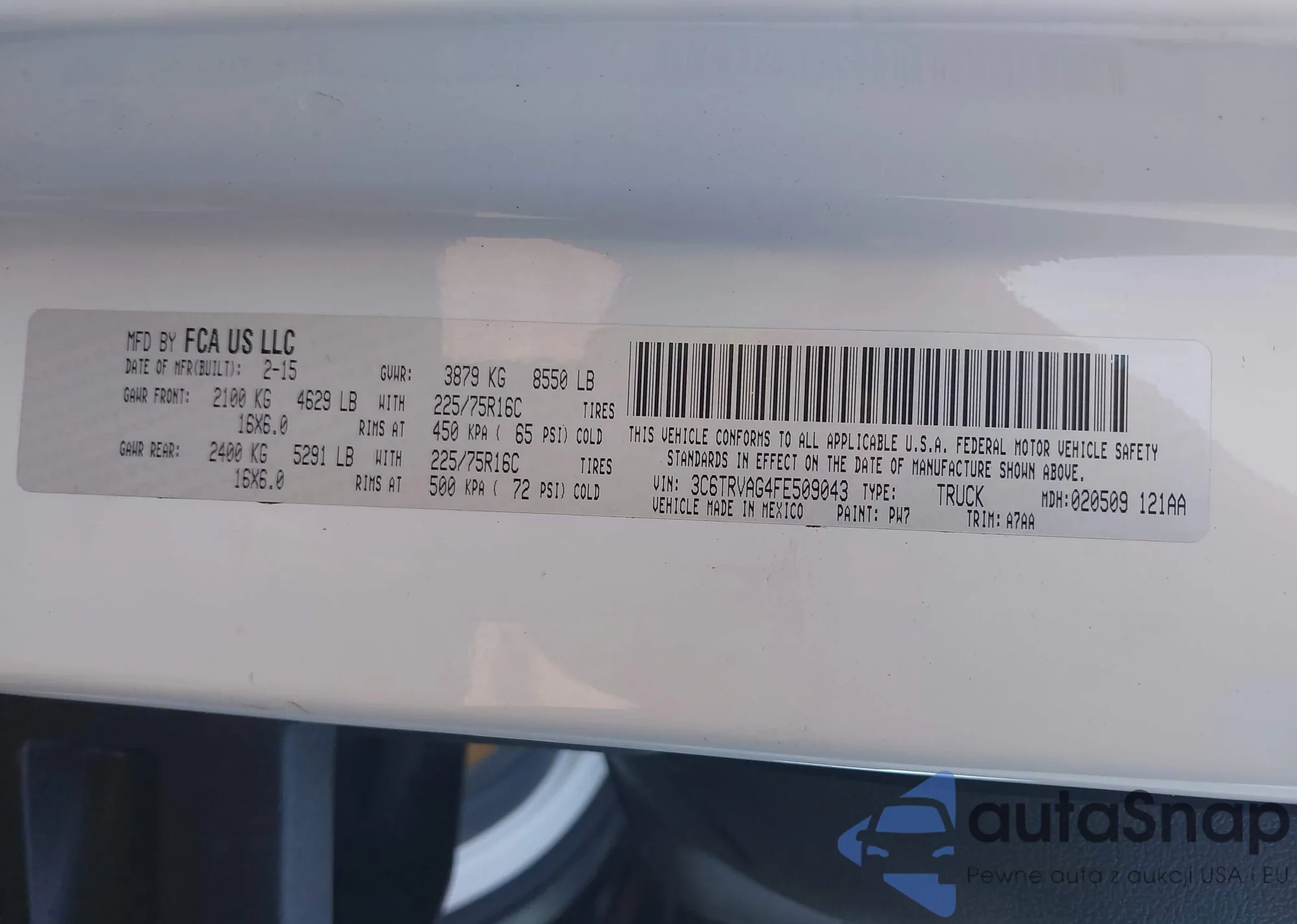 VIN: 3C6TRVAG4FE509043