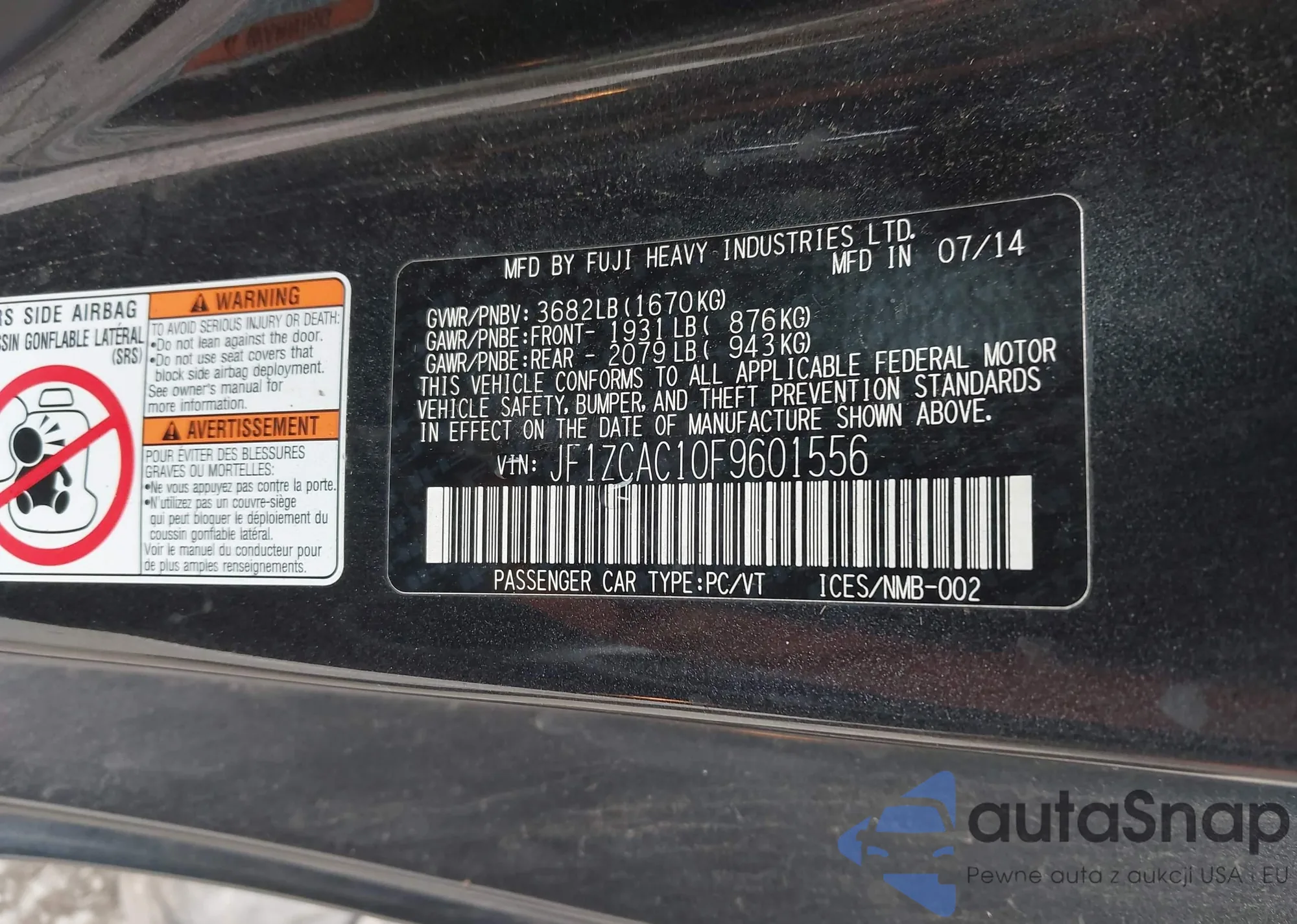 • VIN: JF1ZCAC10F9601556