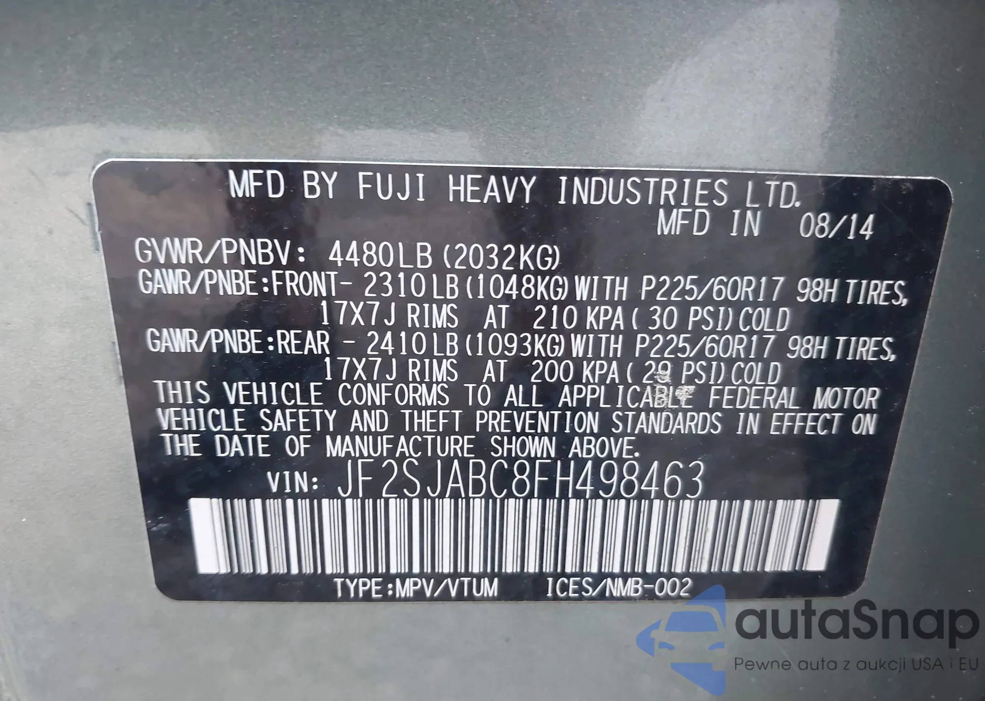 VIN: JF2SJABC8FH498463