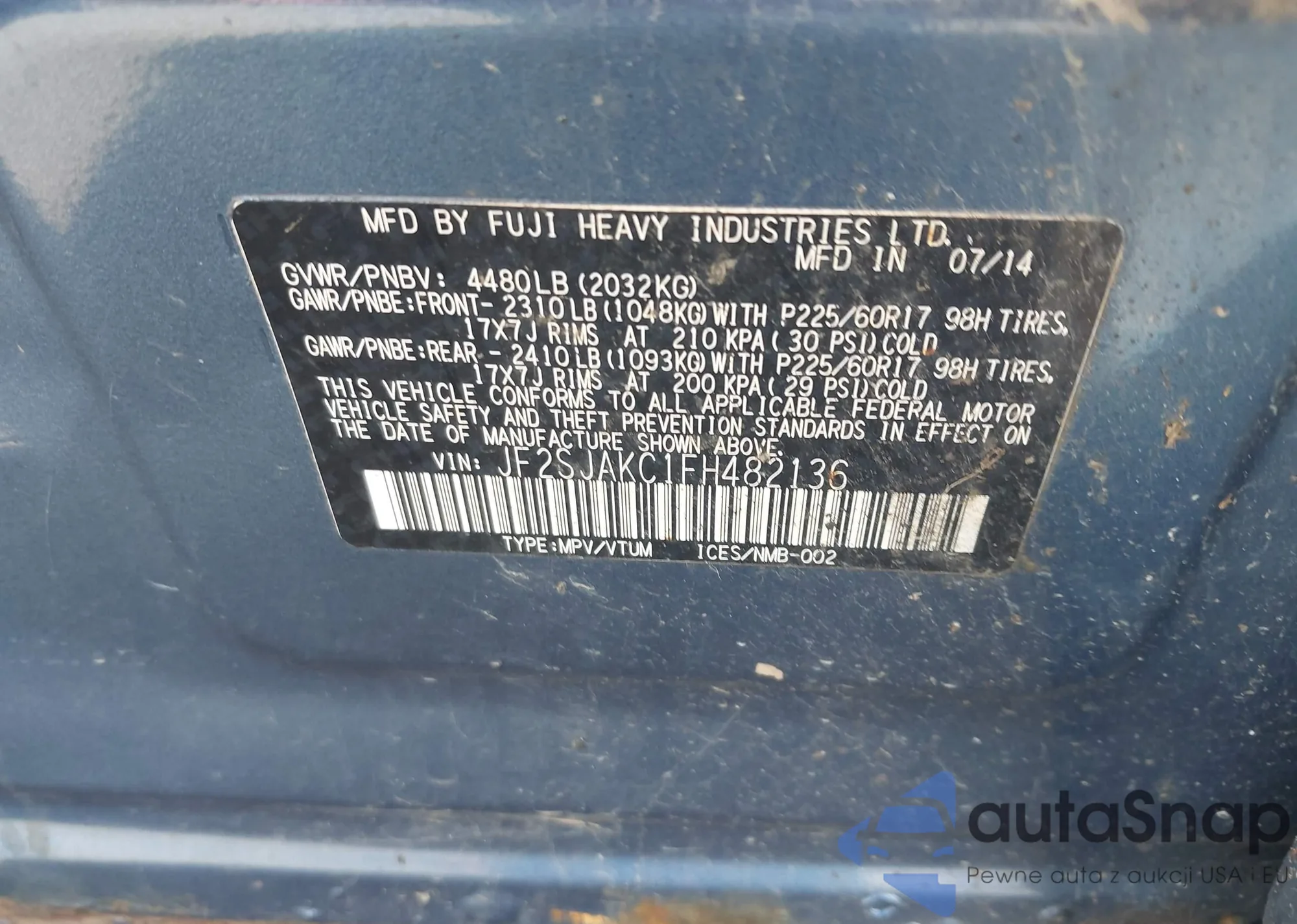 VIN: JF2SJAKC1FH482136