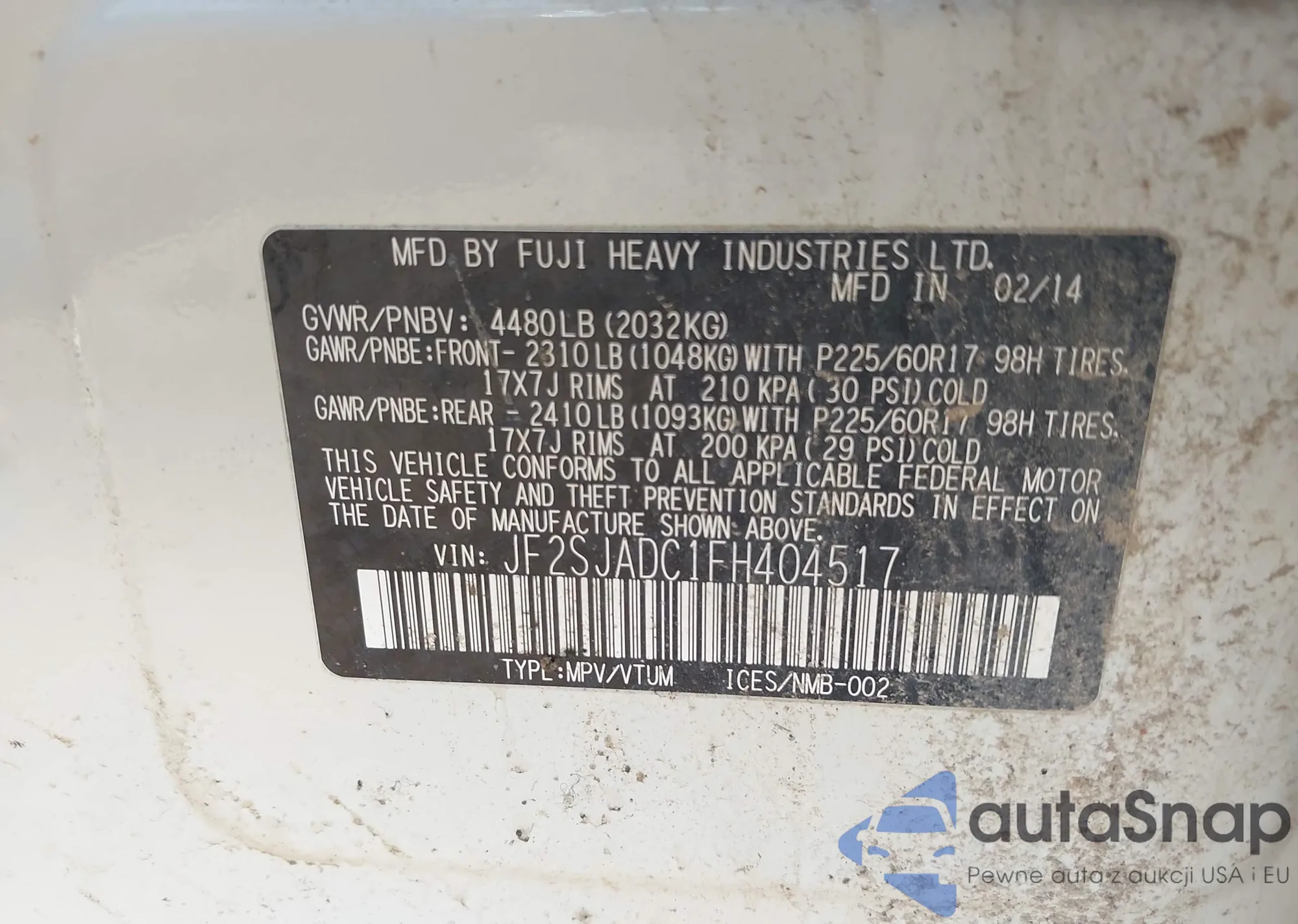VIN: JF2SJADC1FH404517